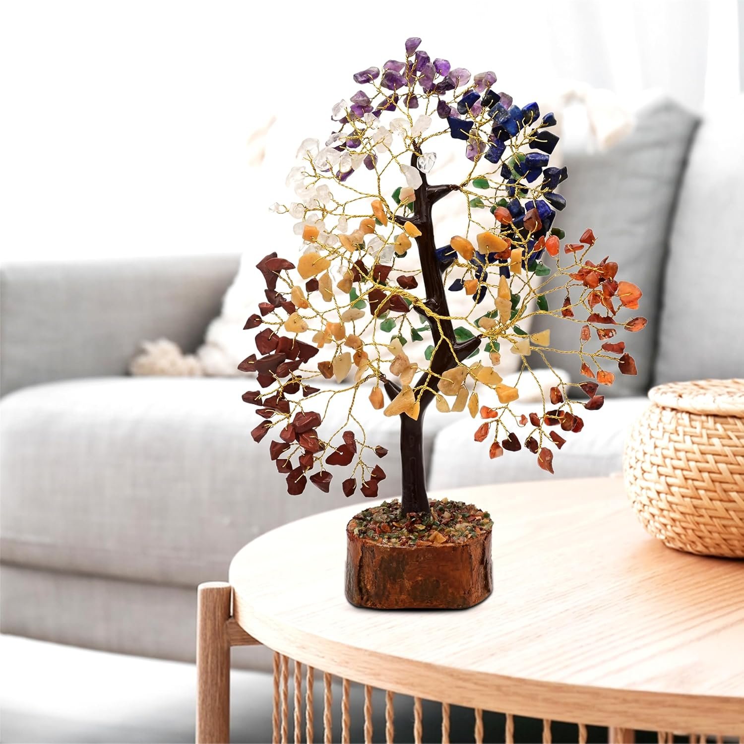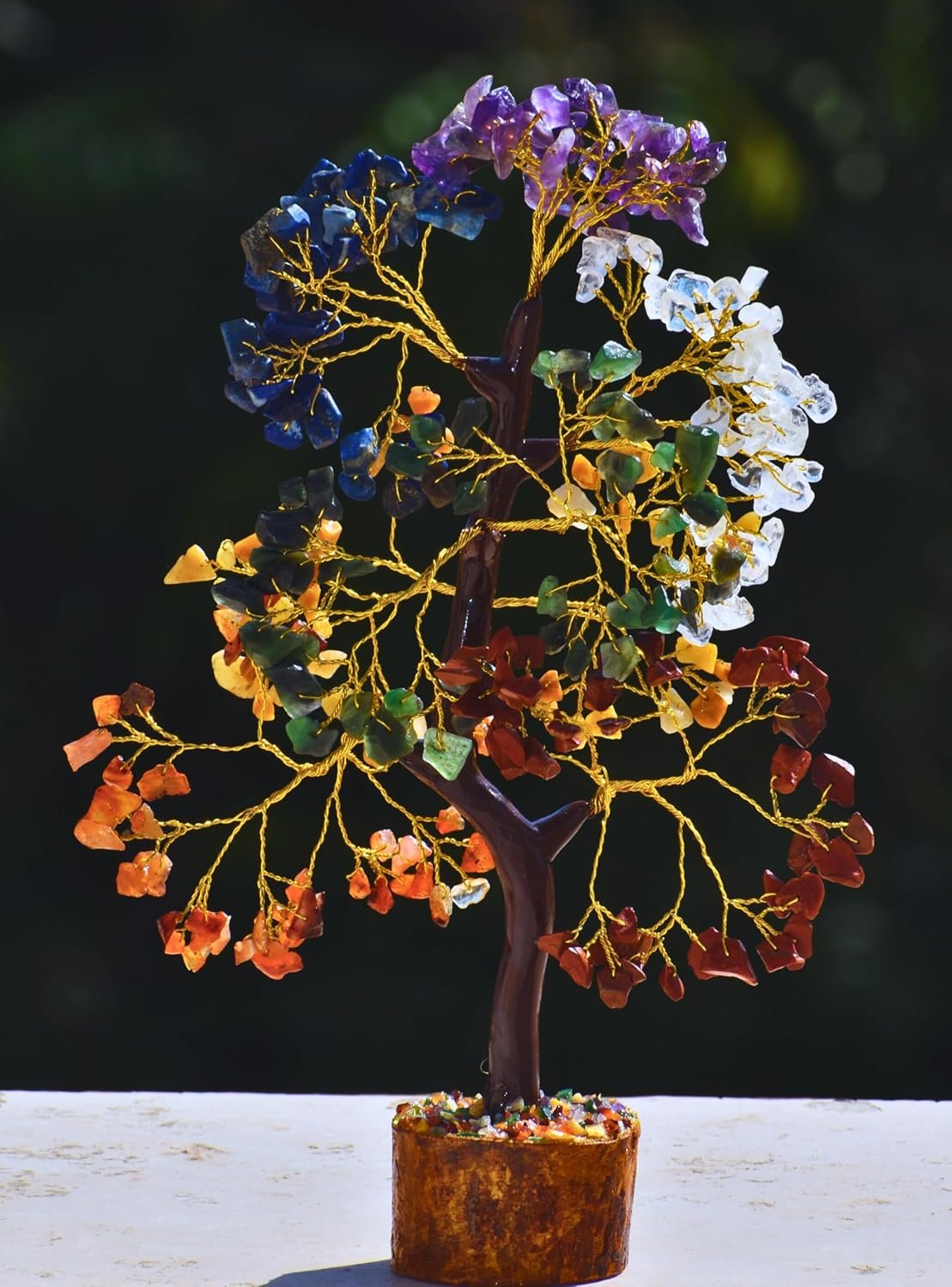 The 7 Chakra Crystal Tree is a decorative item made with natural crystals that represent the seven chakras in the body. It serves both as a beautiful decor piece and as a tool for spiritual balance, healing, and meditation.