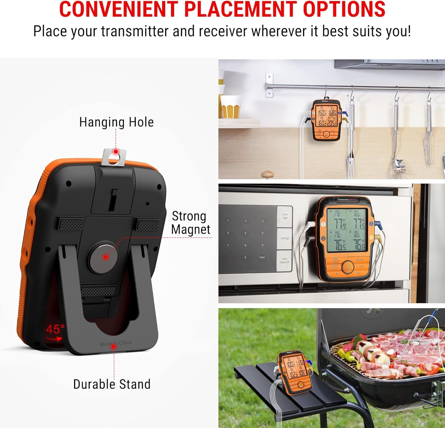 Standalone Transmitter: ThermoPro meat thermometer wireless features a unique design that all key programmable buttons are located on transmitter to allow usage of the BBQ thermometer for grill without the receiver, perfect for those fast cooking food like fish or steak in short distance