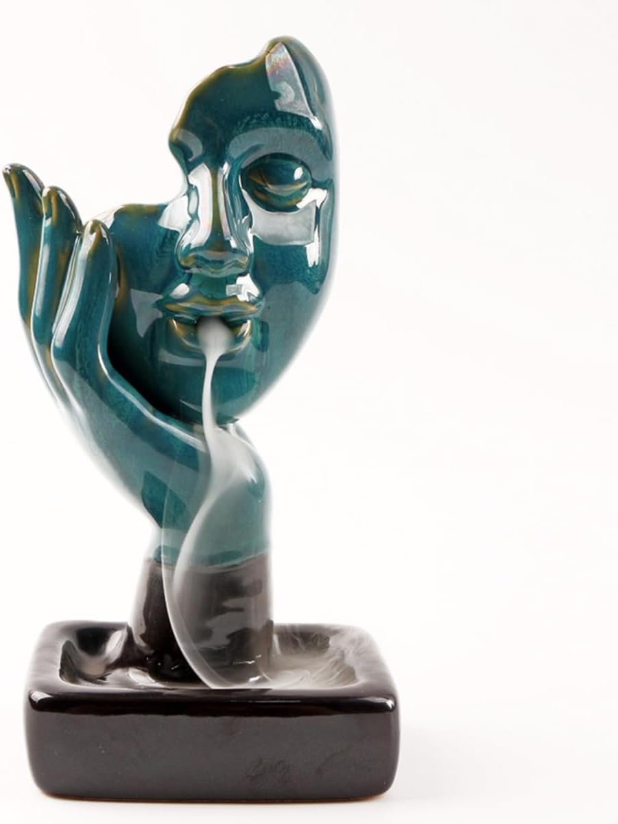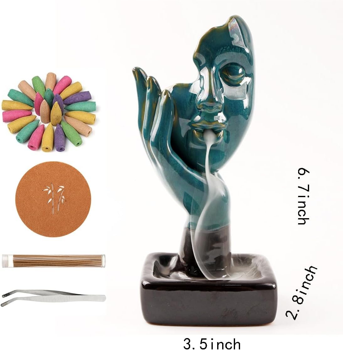 Thinking Statue Backflow Incense Holder Waterfall Burner, with 30 Incense Sticks,20 Backflow Incense Cones,1 Mat,1 Tweezers,1 Thinking Statues Aromatherapy Ornamental for Home Office Yoga…
