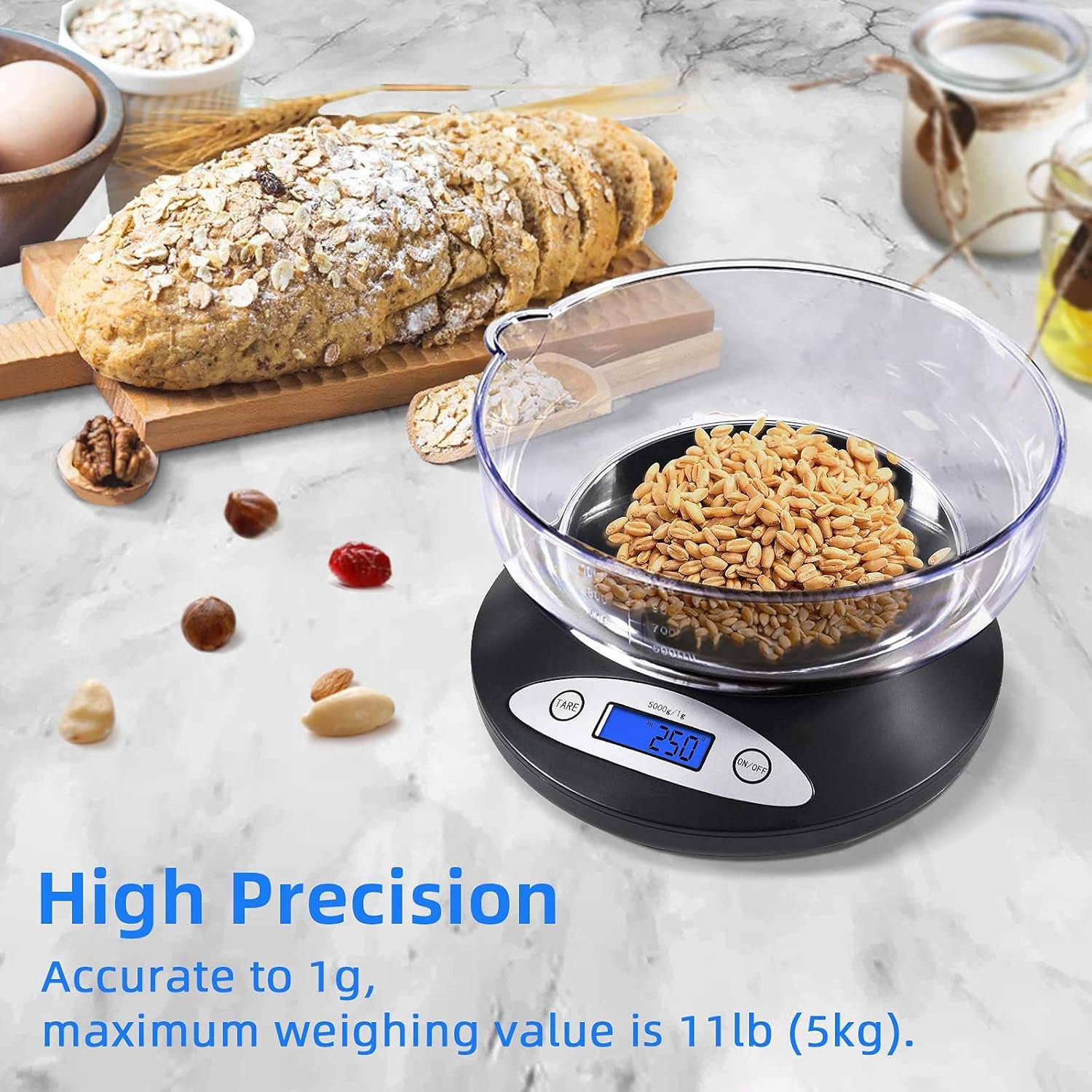 Precision digital food scale in increments of 1g, min. weighing 3g, prefect for cooking, milk or baking important projects.