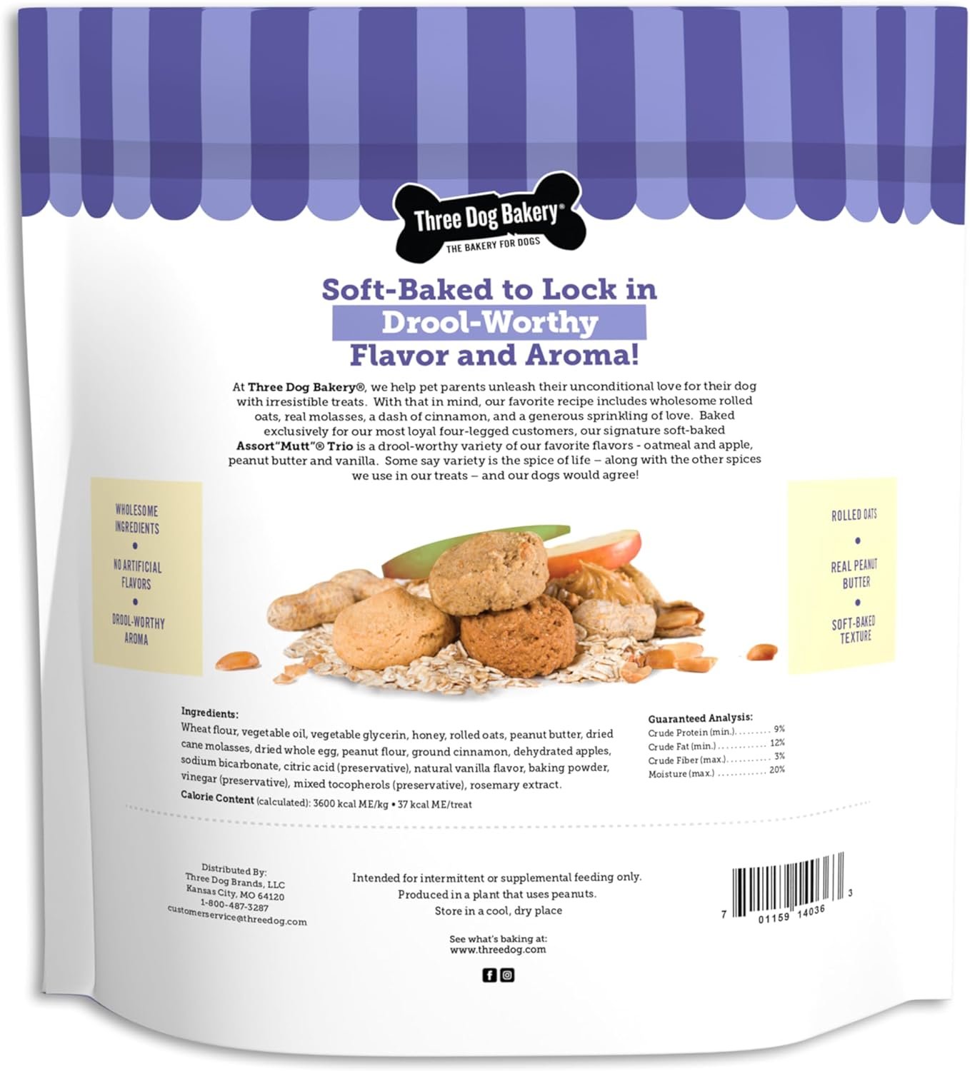 Real treats for real dogs – that’s what Three Dog Bakery crafts with each and every treat – ingredients even YOU would actually want to eat; that means no artificial flavors. They’re baked in small batches right here in the USA. Whether you have a small, medium, or large size dog, these treats are sure to get tails wagging. These meaty treats are packed with vitamins, antioxidants, minerals, and energizing protein and the smoky roasted turkey flavor will please your pup’s palate. The resealable container keeps the treats bakery fresh and ready for your dog to enjoy. You can feel good knowing their treat is made with the same ingredients you would find in treats you’d eat; potato and pea flour, eggs, canola oil, and more. The best part? We bake love into every bite, so let them savor the delicious flavor. Three Dog Bakery first opened in 1989 with a mission to create wholesome and healthy food for Gracie, Dottie, and Sarah, our founder’s pups. Giving them run-of-the-mill treats wouldn’t do, so we got to baking. The result: Handmade treats that we knew we needed to share with the rest of the canine-loving world. Every day spent with your dog is a gift. Let’s face it, we just don’t deserve their unconditional love and devotion. Pure love deserves pure treats. Sweeten life’s moments with Three Dog Bakery.