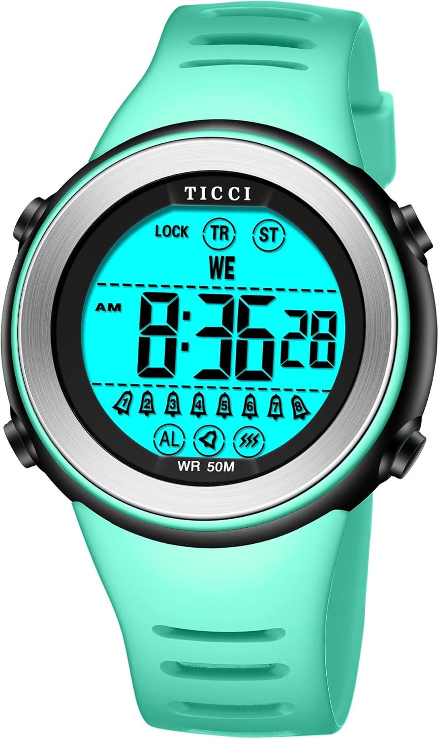 TICCI Men Women Unisex 8 Vibrating Alarms Watch Medication Aids Vibra Pill Alert Reminder Big Digits Waterproof
