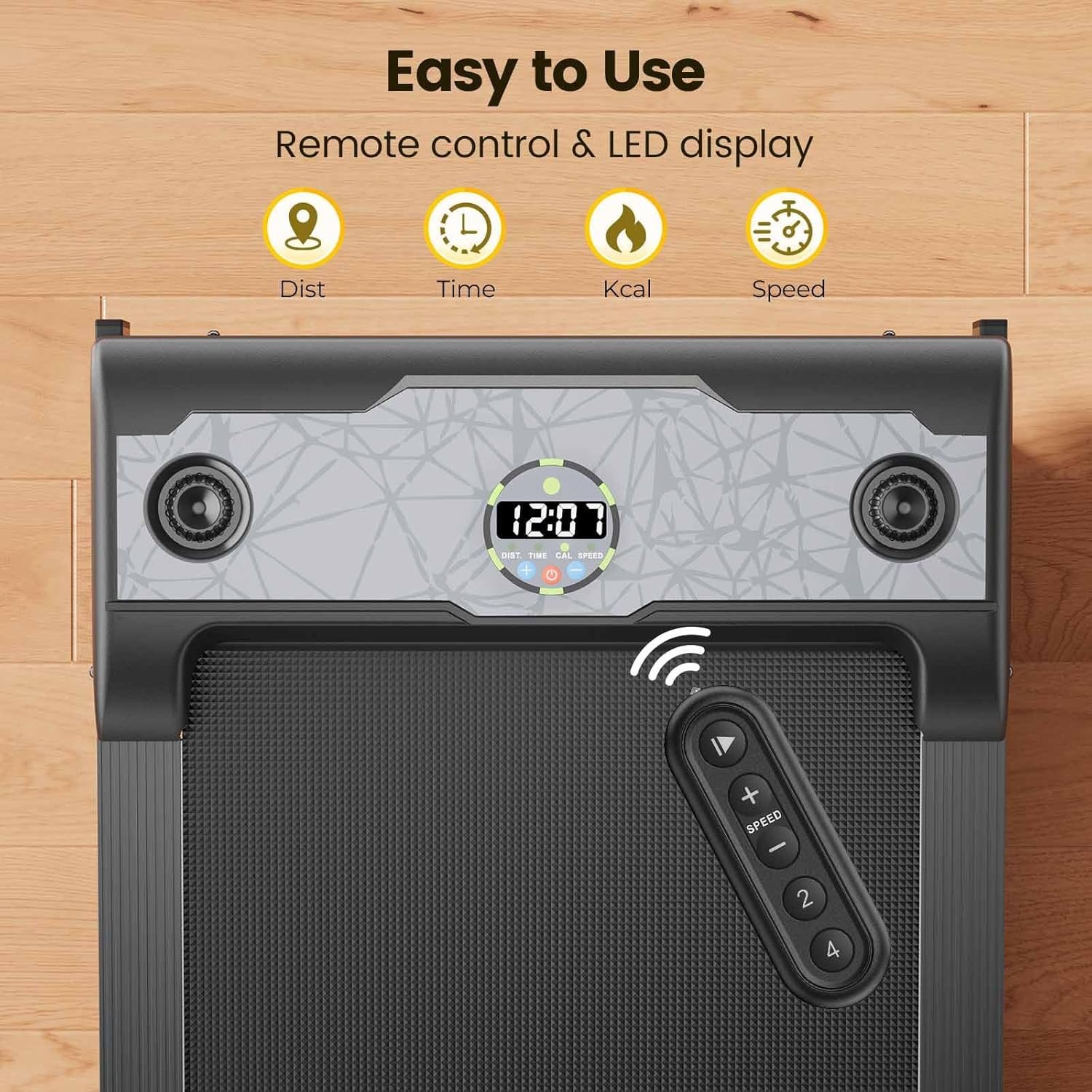 Easy to Use: Time, calories, speed, distance are displayed on the HD LED display; A remote control allows easy adjustment of the speed and quick start and pause during work or exercise; Easy to get walking and running every day with the treadmill for home