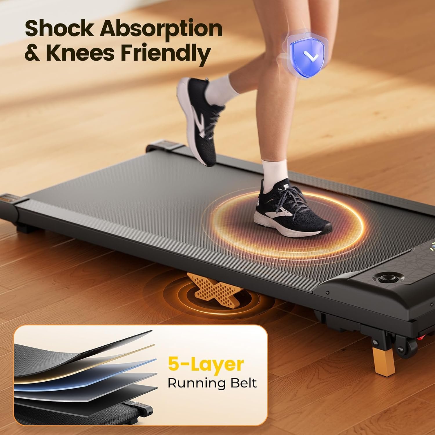 Triple Shock-absorbing Design: This walking treadmill has 5-layer running belt, 8 silicone shock absorbers and double honeycomb soft rubber pads at the bottom; Provides better cushioning and protects your knees and joints to the greatest extent