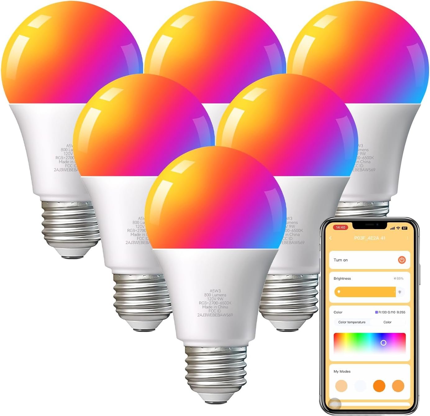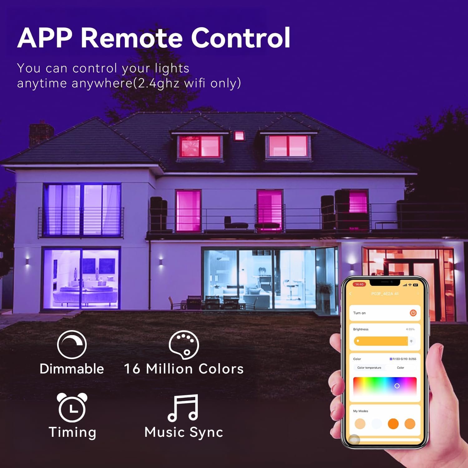 💡【App Control】Use the free App to control your led light bulbs from anywhere anytime. There are dozens of scenario modes and features to choose from in the app(only support 2.4Ghz WiFi).