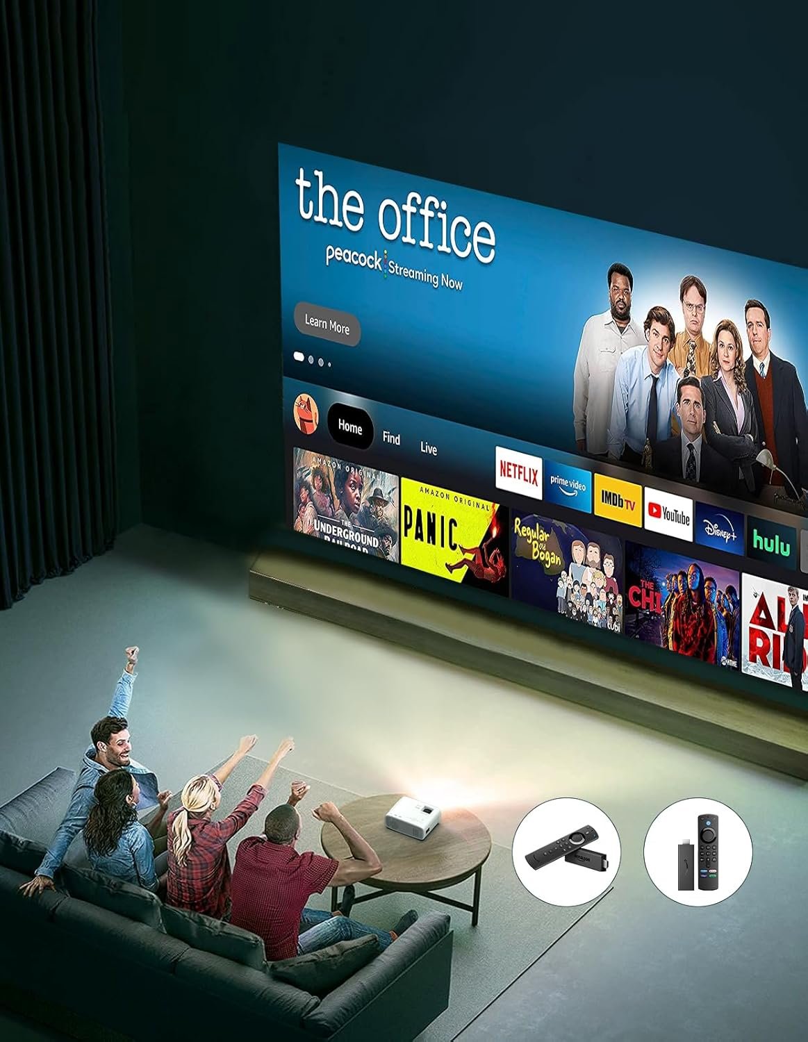 【Faster and Stable 5G WiFi Connection】This outdoor projector uses the latest 5G WiFi technology, you can mirror your iOS and Android devices with the 5G wifi, so you can watch videos or play games smoother and more stable. Ultra-fast 5G WiFi guarantees no lagging while phone gaming and watching YouTube. (Attention: If you want to watch videos which has copyrights, such as Amazon Prime Video, Netflix, Hulu, etc, you need to connect via HDMI, fire tv stick, Roku, or Chrome-cast).
