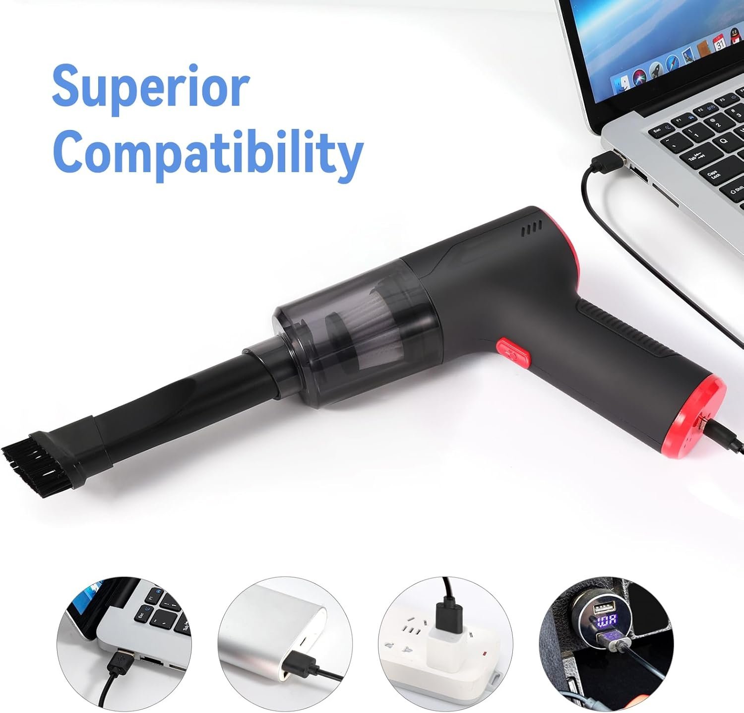 Wide Range of Applications: 6000 PA of super suction power can easily help you tackle hard-to-reach crevices and deep dust. This electric vacuum cleaner specializes in vacuuming the corners of your computer, keyboard, sofa or car seat