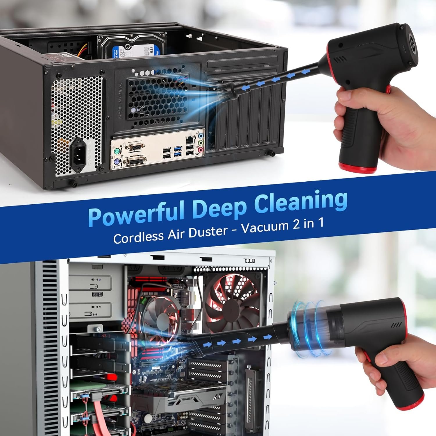 TOBTOS Computer Vacuum Cleaner, Blower and Vacuum 3-in-1, Rechargeable Electric Air Duster for Car, Computer, Home and Office Dust Cleaning(VC-001)