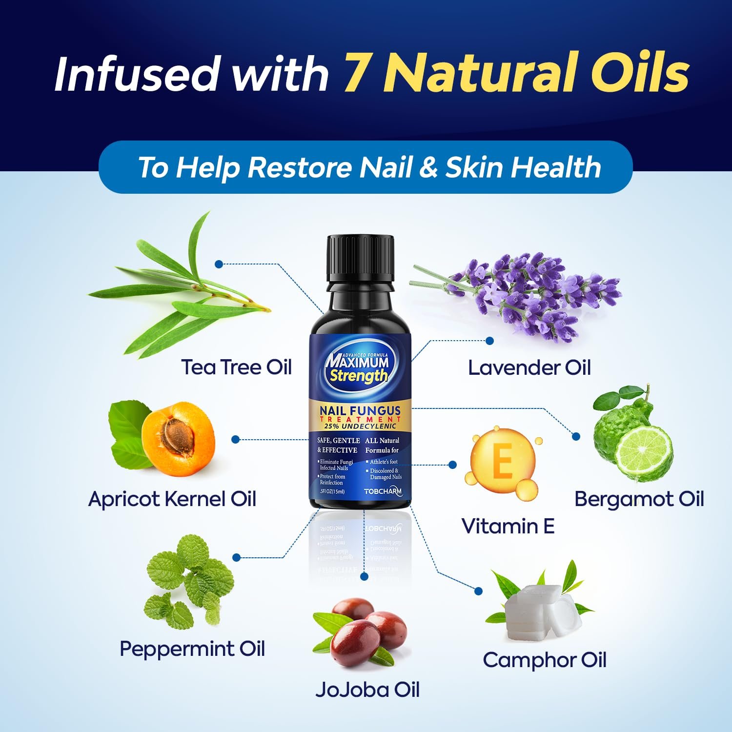 NATURAL & GENTLE : Our Toe Fungus Treatment for Toenail is enriched with a blend of 7 natural oils, carefully chosen to promote the restoration of your nail and toenail health. This Fungus Nail Treatment contains Tea Tree oil, Jojoba oil, Lavender oil, Peppermint oil, Apricot Kernel oil, Camphor oil, and Bergamot oil.