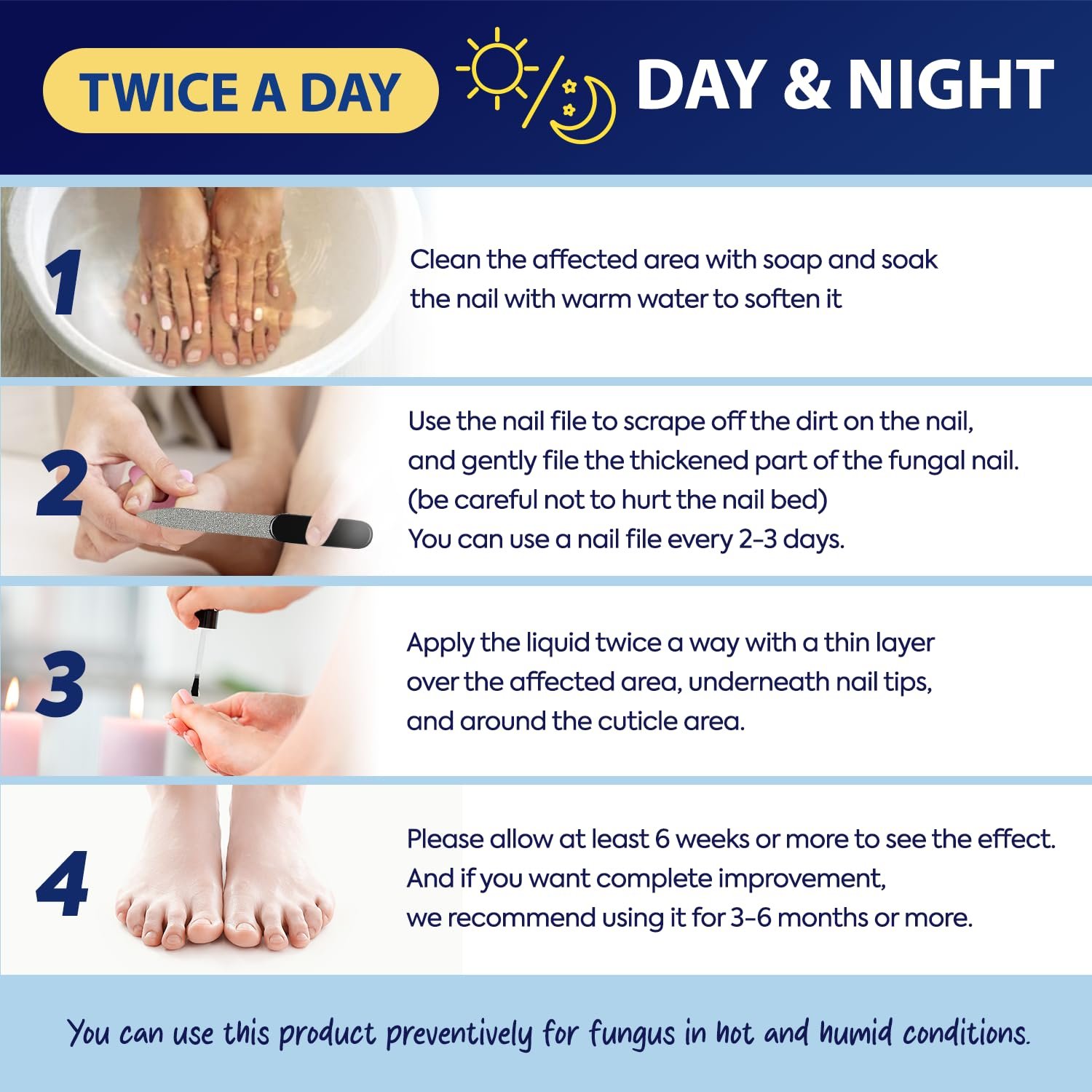 USER-FRIENDLY APPLICATION : Our Toe Fungus Treatment for toenail is easy to use. Apply fungus nail treatment to the skin at the base of the cuticle and along the edges of each infected nail 2 times daily. Allow the Toenail fungus treatment to absorb for five minutes for optimal results.