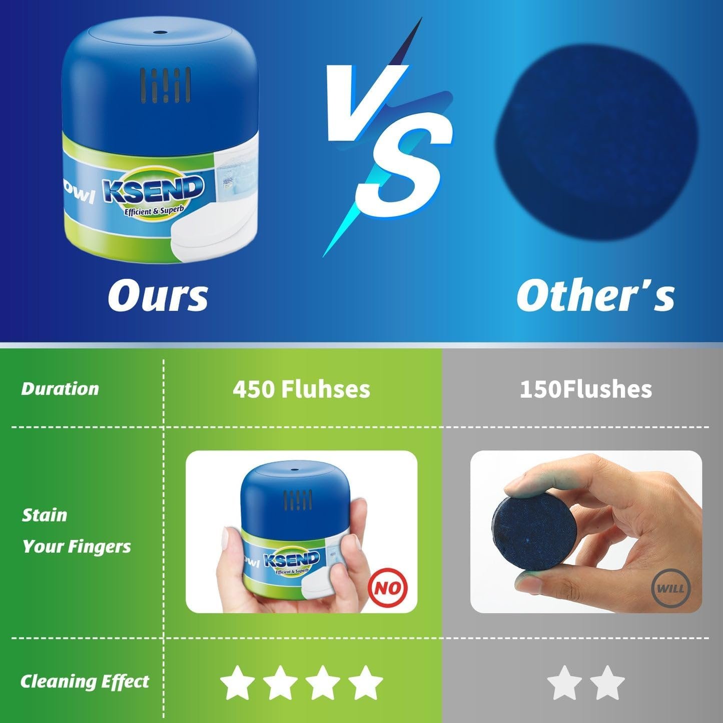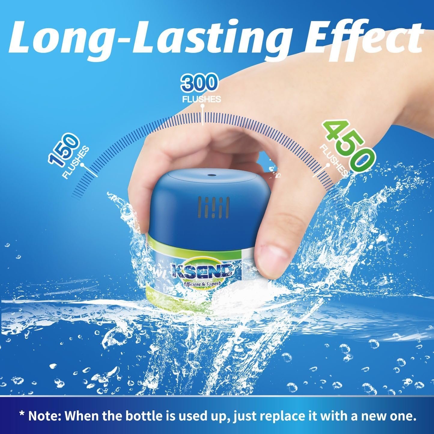 PROLONGED EFFECTIVENESS: Featuring a sustained-release technology, Ksend’s toilet tank cleaner gradually releases cleaning components over time. With each bottle providing up to 600 flushes, revel in the luxury of a spotless, odor-free toilet for weeks. (Note: Product duration varies based on usage and water temperature.)