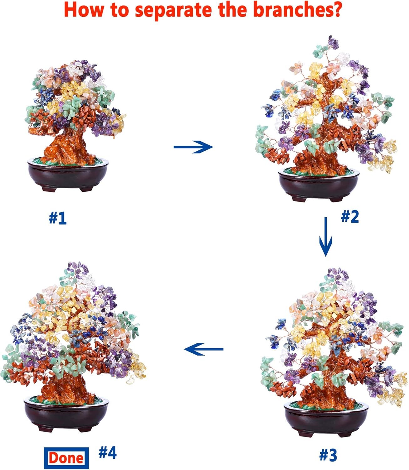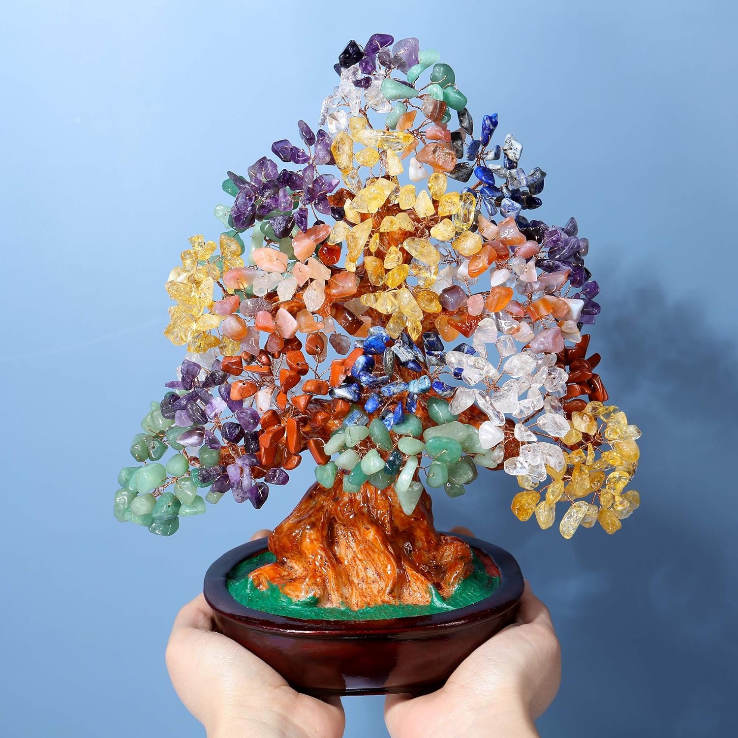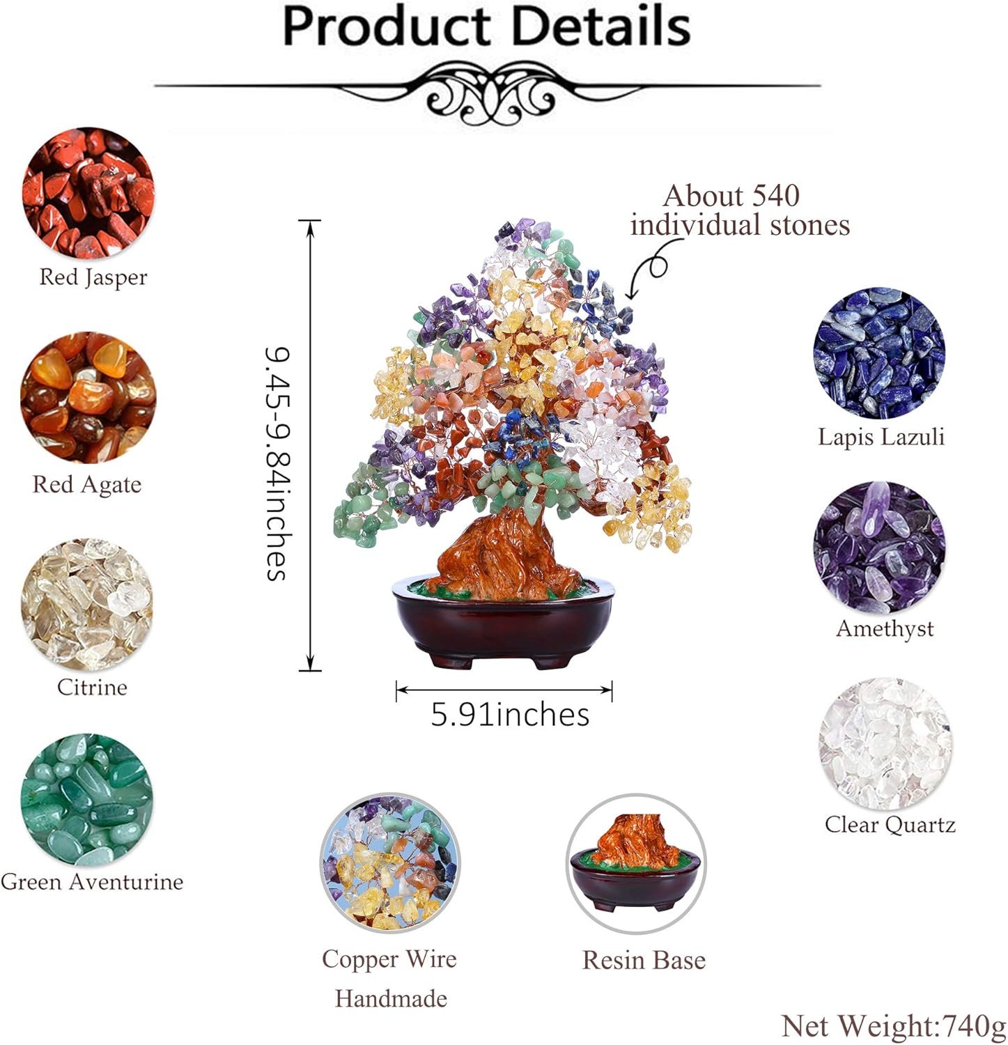 Top Plaza 7 Chakra Healing Crystal Money Tree 10 Inch Stone Bonsai Tree Feng Shui Good Luck Wealth Tree Decor Business Gift for Office Home Living Room