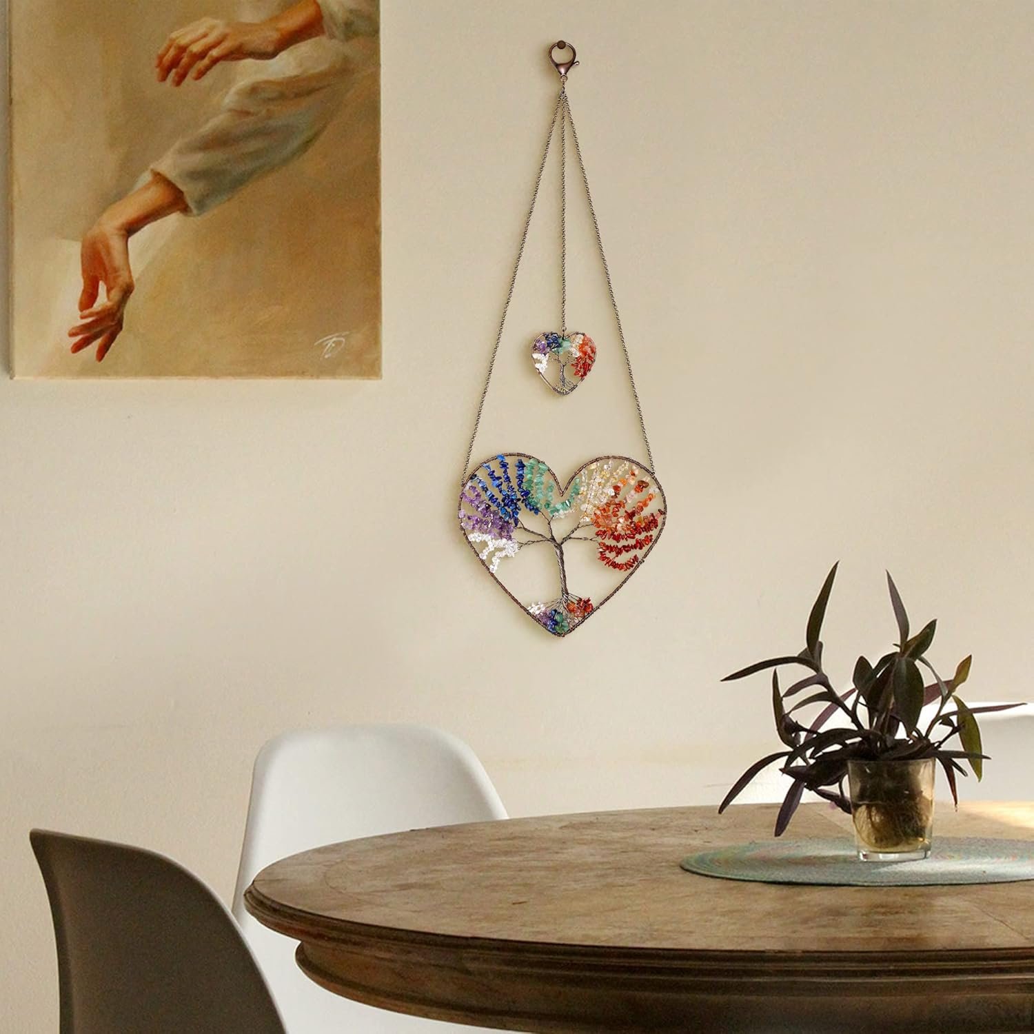 Top Plaza 7 Chakra Healing Crystals Hanging Ornament Heart Shape Handmade Life Tree Decoration Home Indoor Wall Decor for Good Luck Yoga Meditation Protection