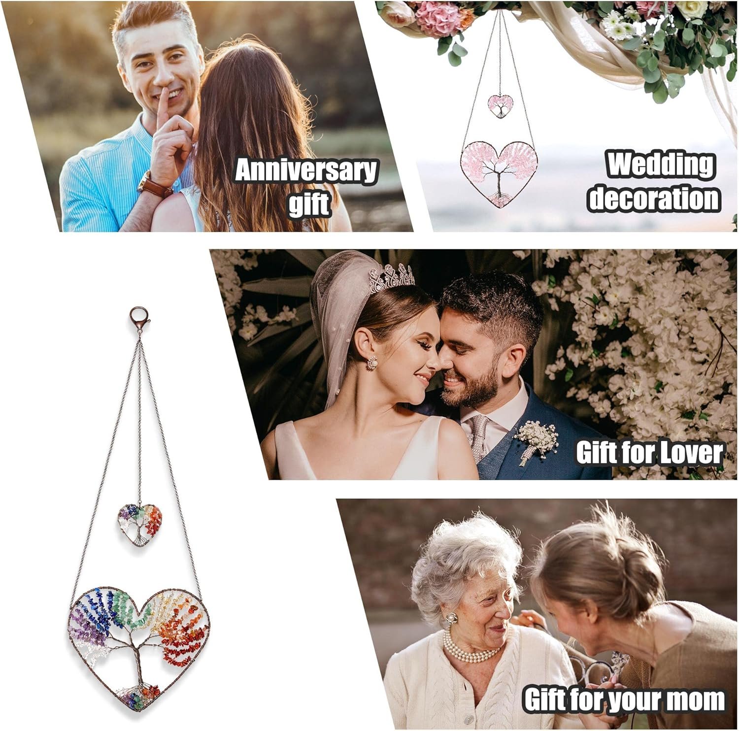 Heart Shape Hanging Decor Handmade Life Tree Hanging Ornament Decoration Healing Crystal Hanging Decor, Good for home/indoor decor or chakra crystal healing, It is said to improve people luck as well as an excellent chakra hanging ornament in relationship.
