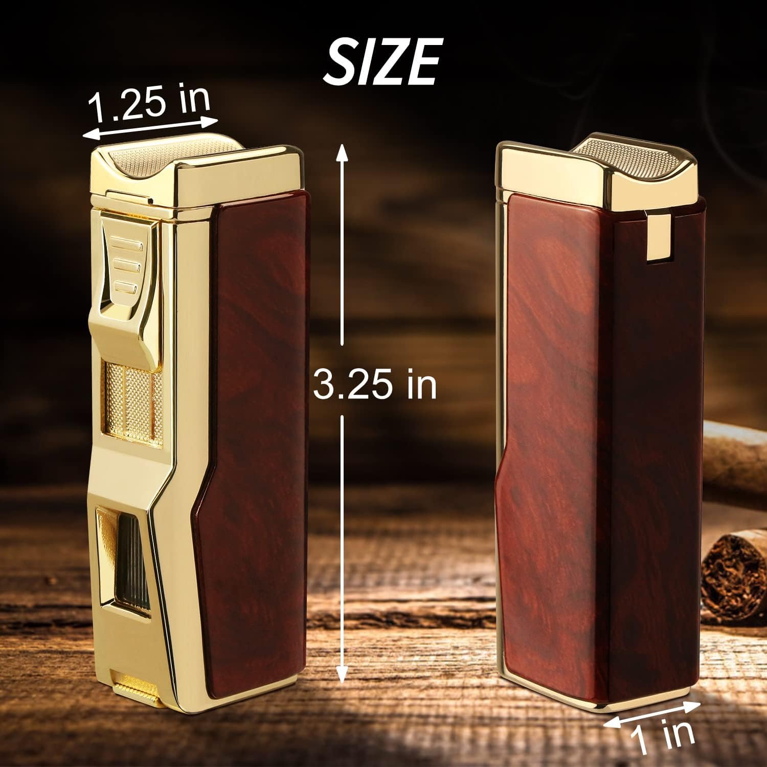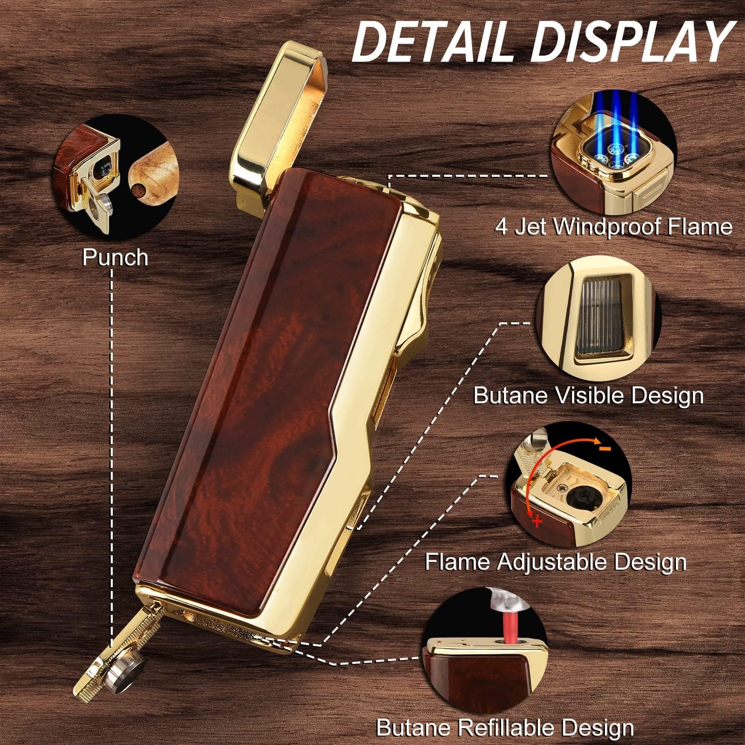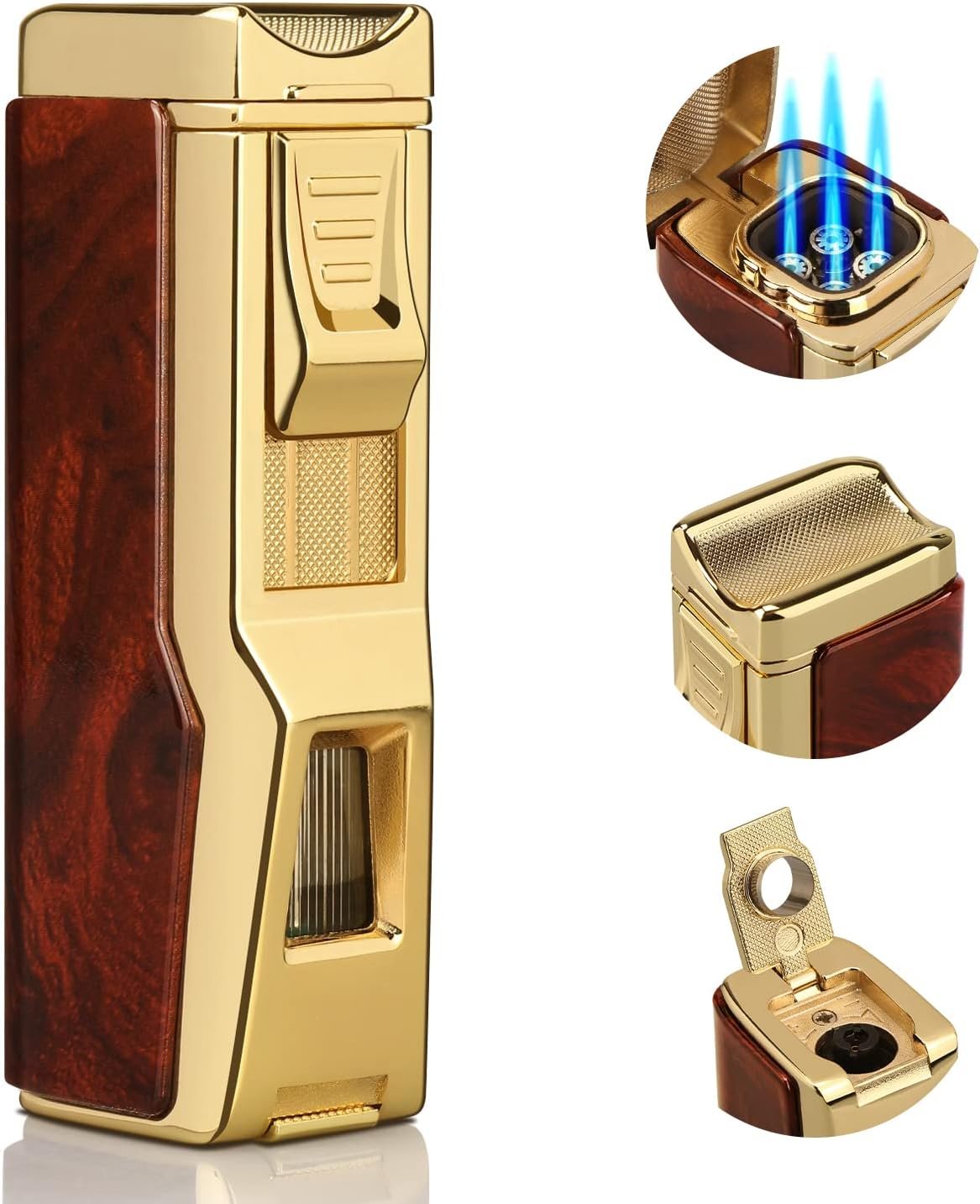 Torch Lighter, 4 Jet Flame Lighter Refillable Butane Lighter Windproof Lighter Gift for Men Women (Mahogany, Without Gas)