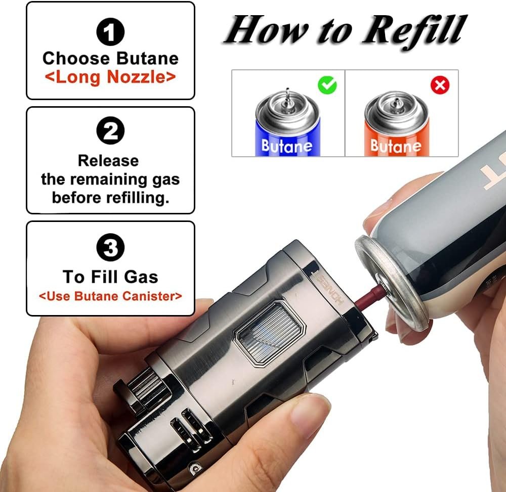 5.Daily Use – Perfect lighter for cigars/cigarettes(send without gas), culinary use, activities such as camping, fishing, hunting,Welding Soldering BBQ and so on.