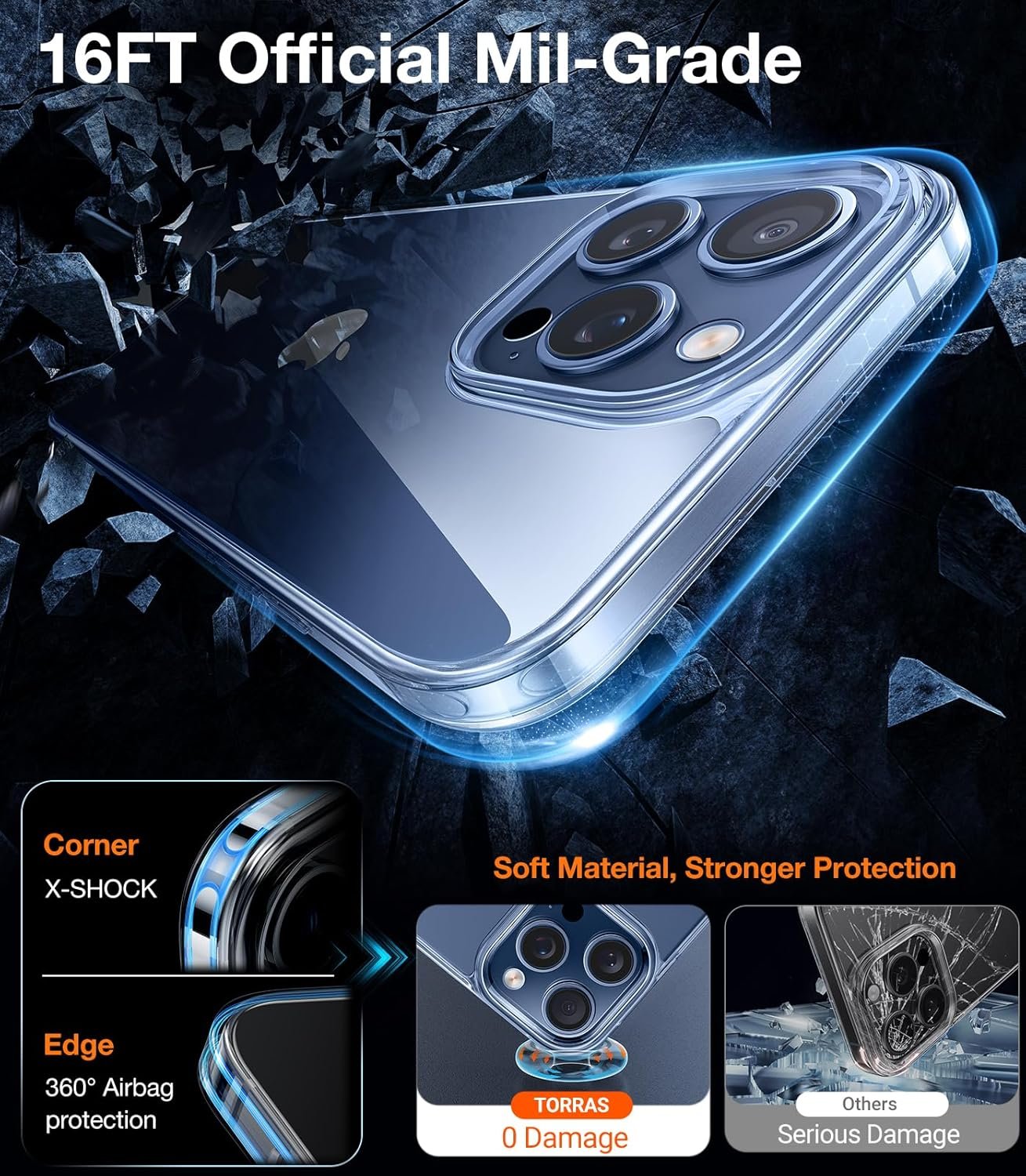 [Anti-Yellow Properties, Long-Lasting Crystal Clear] The slim clear case for iPhone 15 Pro Max case is lightweight, durable, and stylish. This case for iPhone 15 ProMax case is made of high-tech material-TORA-Clear. It totally shows the beauty of your 15 Pro Max brilliantly. This clear case for iphone 15 pro max features advanced anti-yellowing Tech. The tighter natural plant molecules, antioxidant coating and blue-molecule Tech resist 99.9% of yellowing caused by sweats.