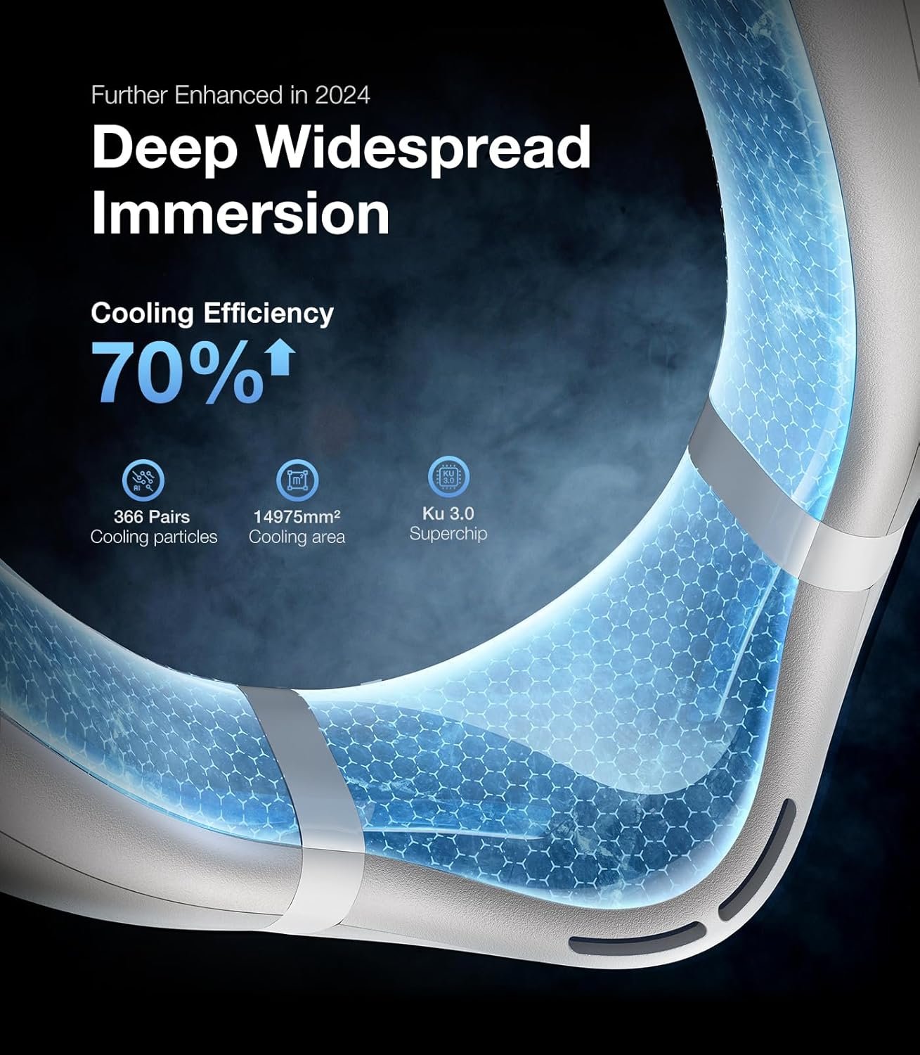 【❄️Surround Cooling, New Record!】What makes COOLiFY Cyber outstanding? 1⃣️by adding 3 TEC cooling modules, cooling area up to 14,975 mm², bring overall coolness to head, neck, and back; 2⃣️with patented graphene thermal conductivity settings and the addition of 366 pairs of cooling particles, the cooling efficiency is increased by 70%. 3⃣️Powered by next-generation KU 3.0 chip and industry-leading Coology system, it provides you with an immersive cooling experience with a rapid decrease of 20 degrees.