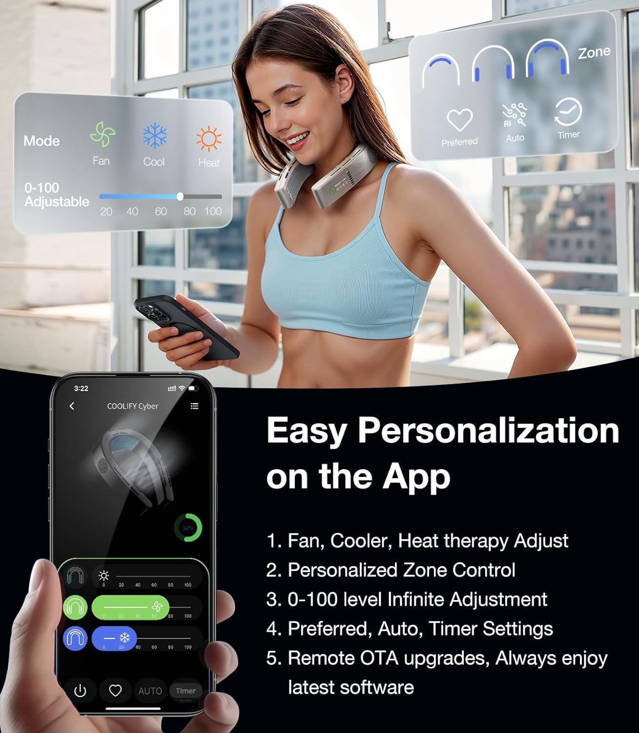 【👑Stay Cool with COOLiFY this Summer】COOLiFY Cyber, Smart AI Neck Cooler, has astonishingly been released in 2024, is the top-of-the-line flagship product with full body cooling semiconductor. As the pioneering brand of neck air conditioner, TORRAS has always been breaking through new technologies to lead the revolution in the personal cooling device industry. This summer, COOLIFY Cyber will bring you an unprecedented ultimate Immersive cooling experience.
