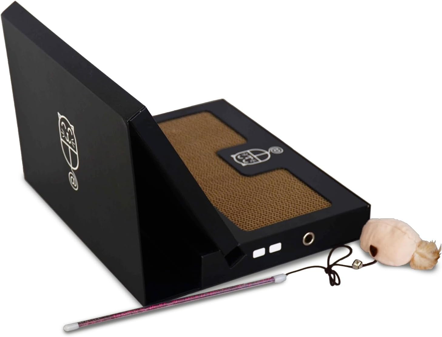 🕹 READY TO PLAY: Dive into fun right out of the box! Our cat scratch pad laptop comes pre-assembled, saving you time and hassle. Inside, a multi scratch pad for cats laptop, an interactive mouse cat toy, and 50 stickers for customization.