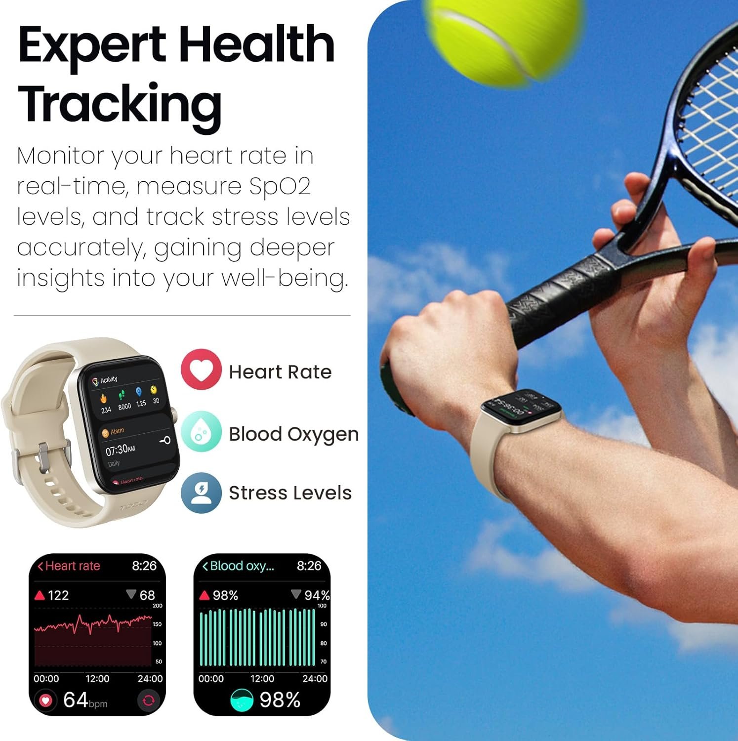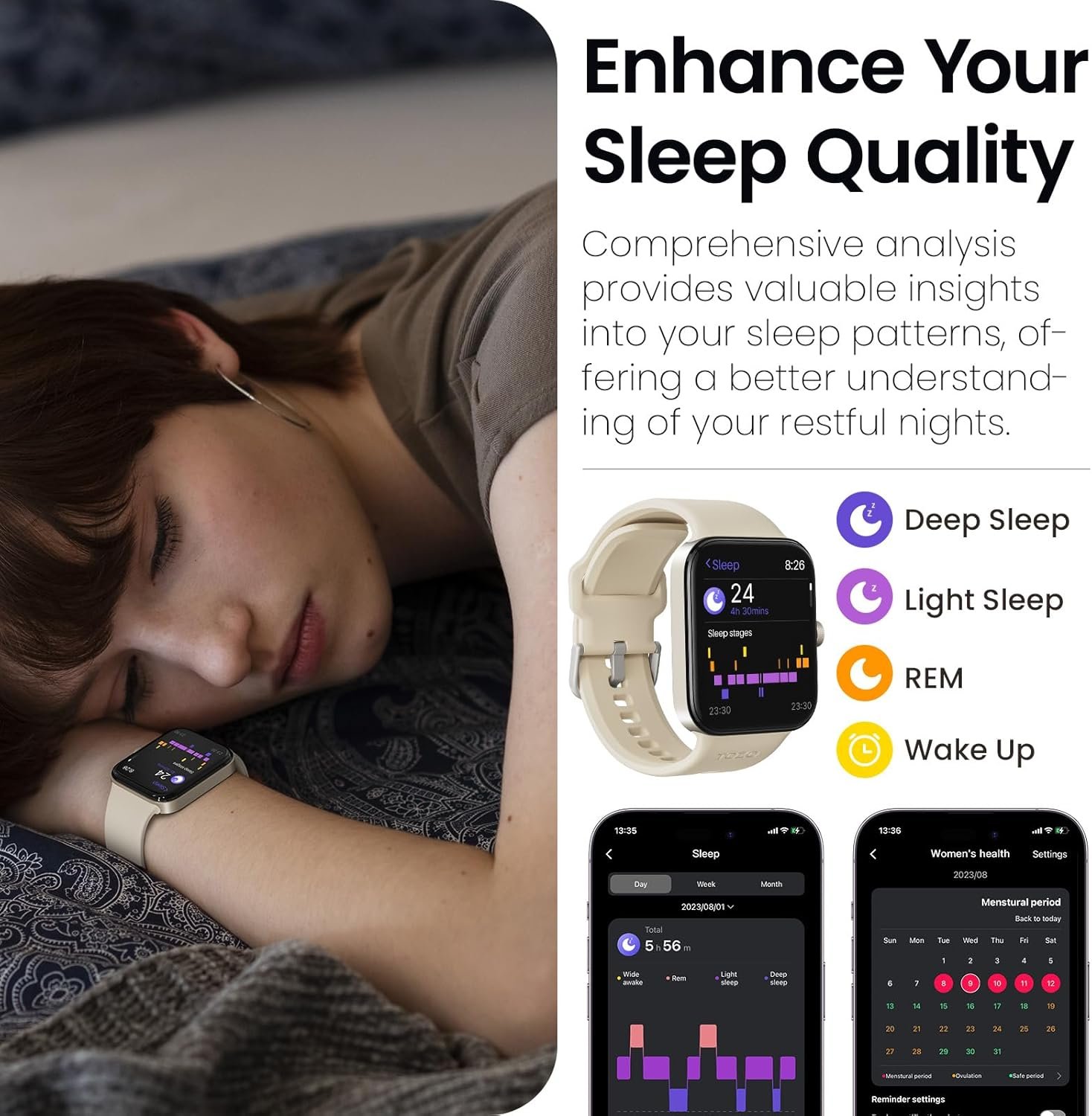 【Comprehensive Health Monitoring】TOZO S4 adopts an high-precision sensor that accurately measure your heart rate and blood oxygen levels, stress testing in real time. Furthermore, the health watch tracks your sleep patterns to ensure you get the restful night’s sleep you deserve, including deep sleep, light sleep, and REM sleep stages.