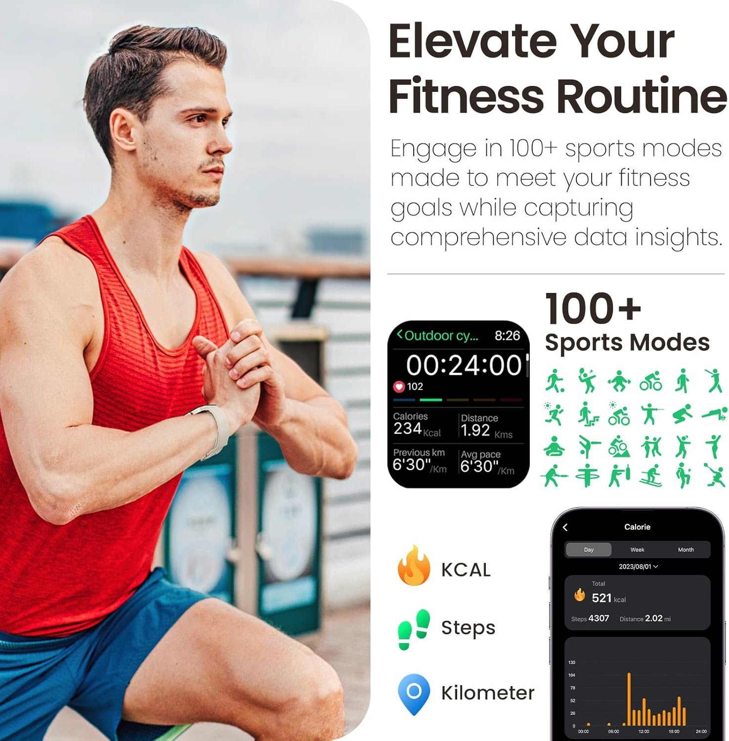100+ sports modes tailored to meet all your fitness ambitions, from hikes to mountain climbs.