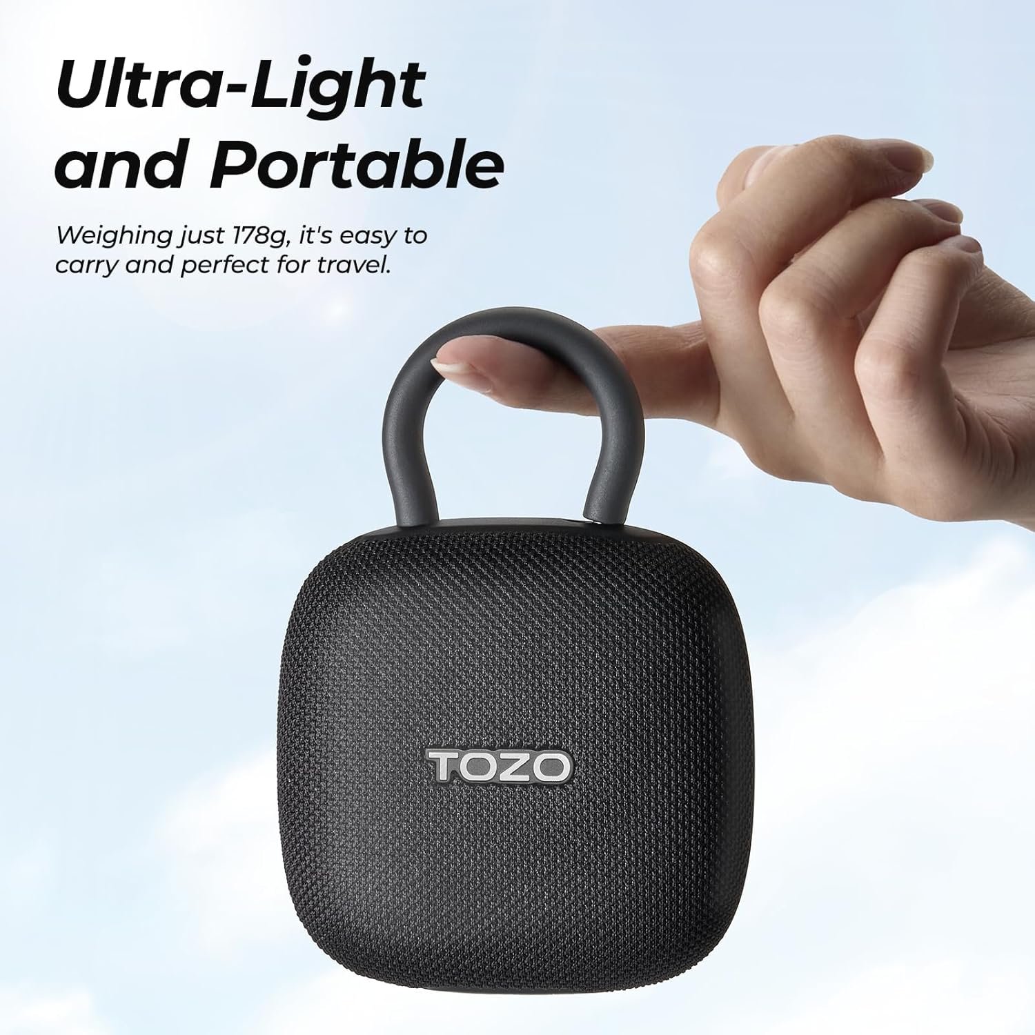 MINI PORTABLE DESIGN – The TOZO PE1 portable speaker boasts a portable and mini design, with dimensions of 129*90*44 mm, even smaller than your palm. You can hang it on a backpack or slip it into your pocket for easy portability.