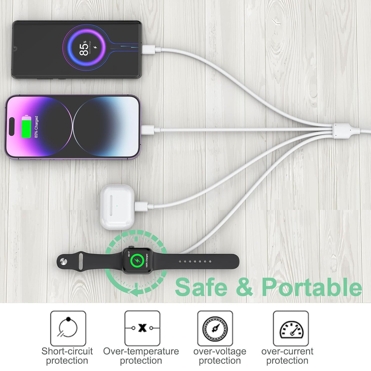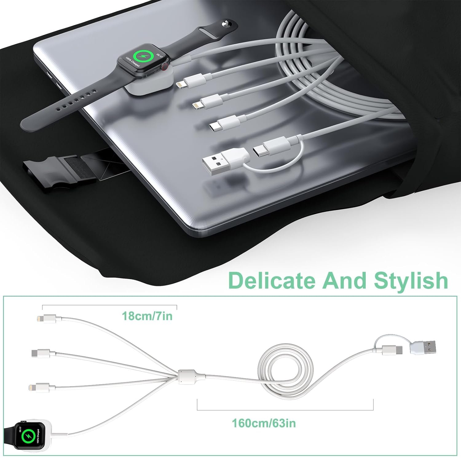 【6-IN-1,Charge Simultaneously】The Type C+USB A 6-in-1 multi USB Charging Cable Design,With Watch Charger,2*iPhone lightning and Type-C connectors. Fits all Watch Series,most iOS and USB-C devices, one cable meets your 4 different demands.1 cord = 6 cords, it can charge most mobile phones on the market!