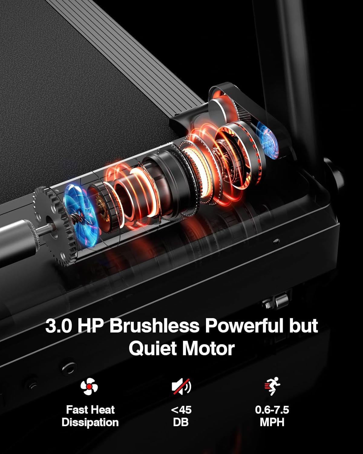 【Powerful and Quiet Brushless Motor】This treadmill for home features a high-cost brushless motor, which is more efficient than ordinary brushed motors. It delivers a maximum speed of 7.5 MPH with 3.0 HP, using less power. The motor’s lifespan extends from 900 hours to 3500 hours, nearly four times longer! Additionally, noise levels are kept below 45DB, ensuring a quiet and comfortable exercise environment.