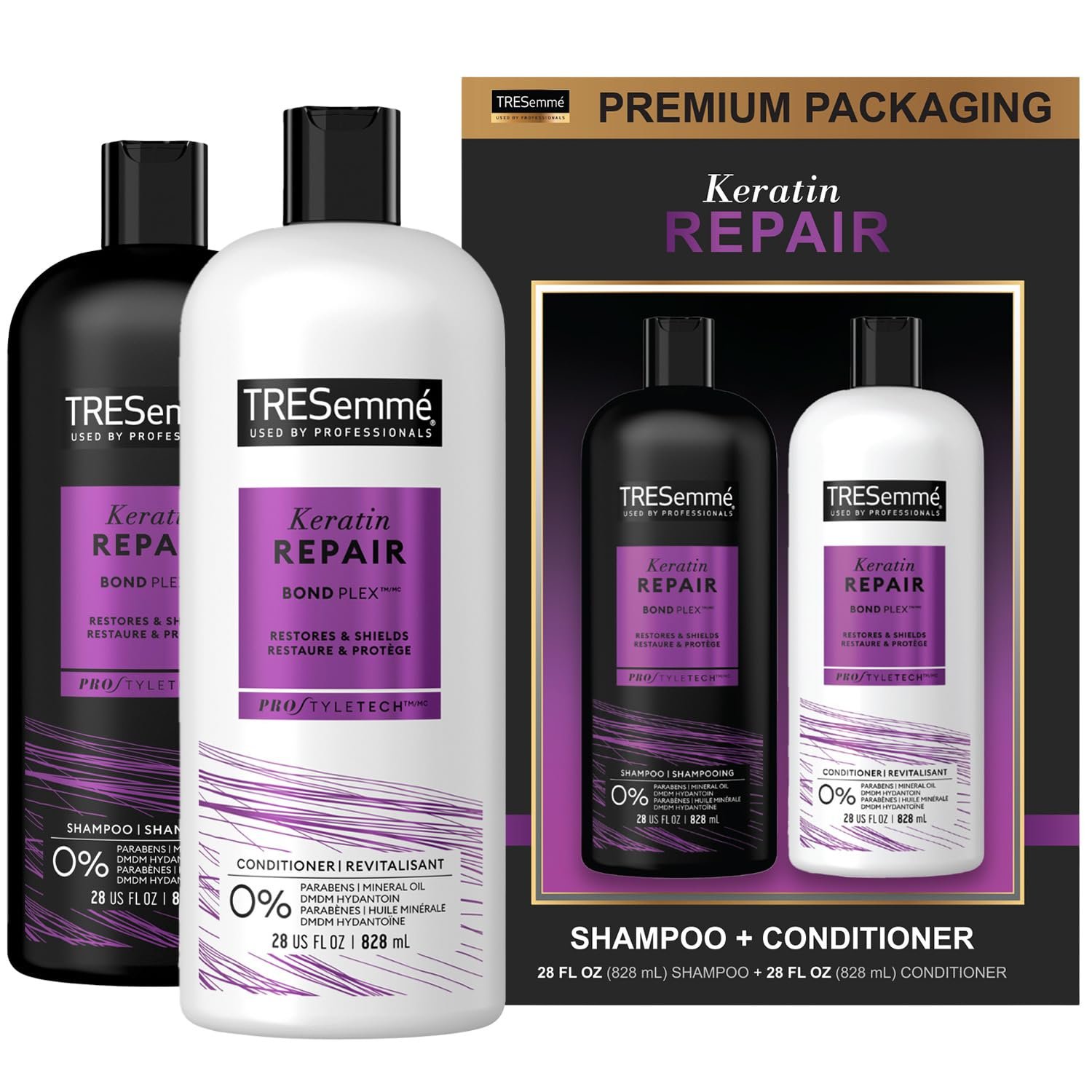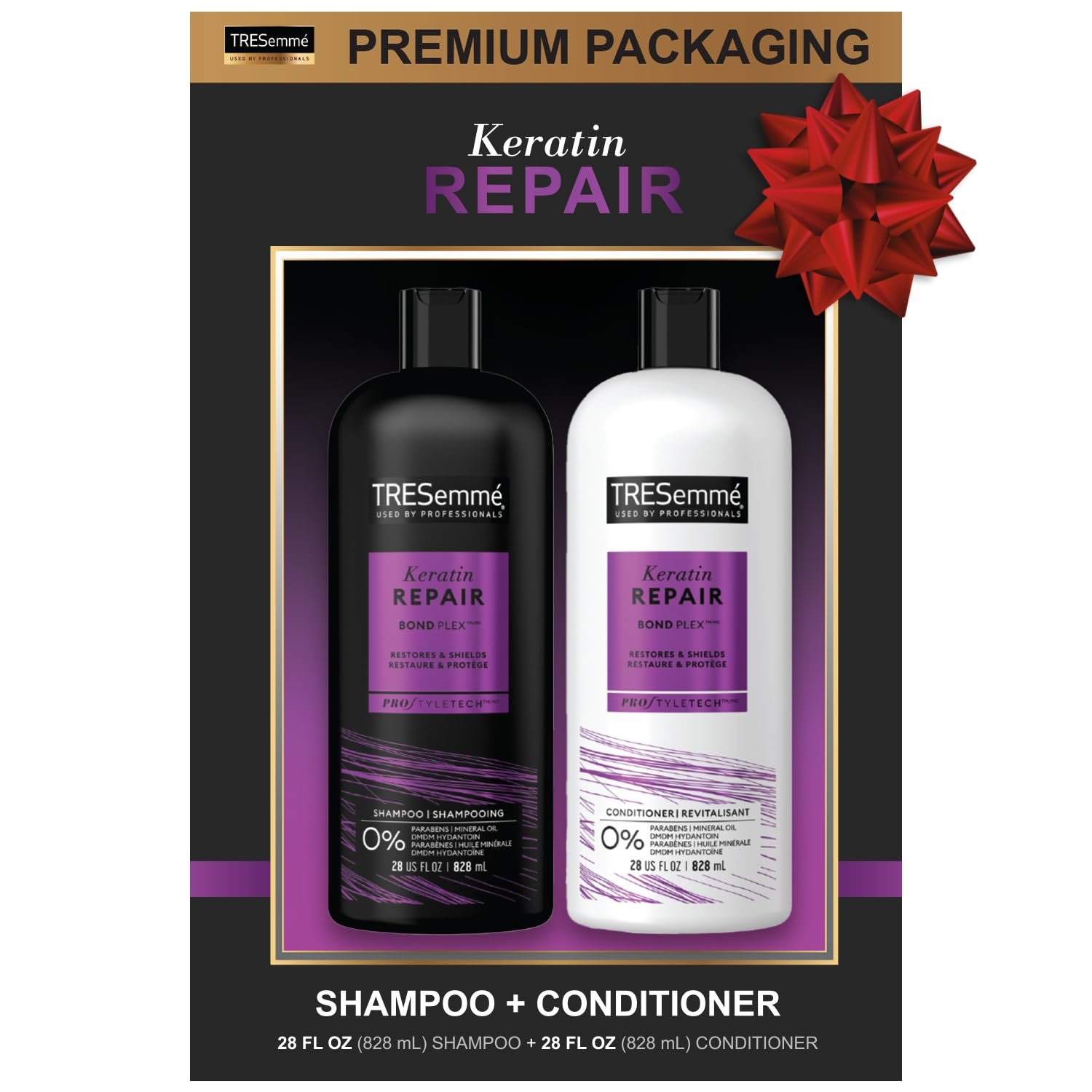 GIFT SET FOR WOMEN: Give yourself or someone you love gorgeous, smooth, and frizz-free hair with the TRESemme Keratin Repair Shampoo and Conditioner set presented in premium packaging.