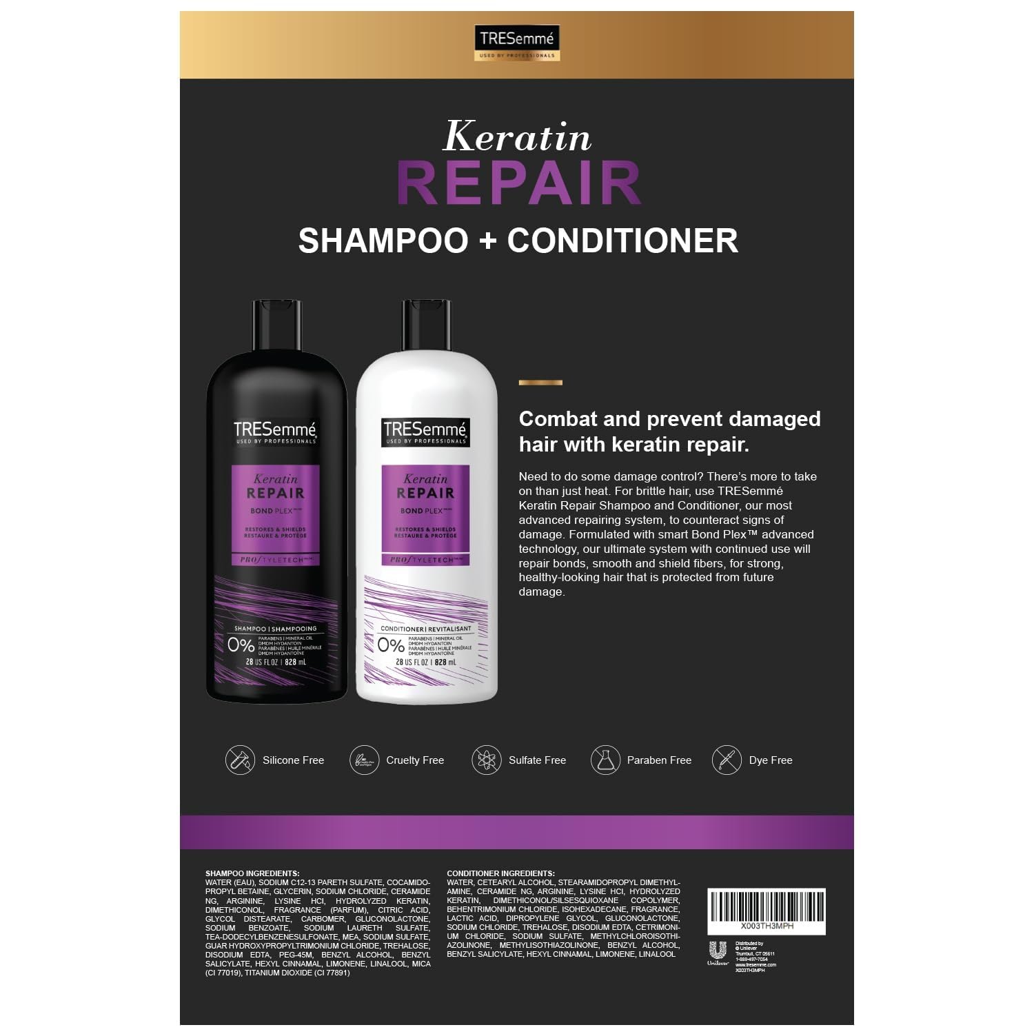 HAIR REPAIR TREATMENT: Formulated without silicone, parabens, or dyes, the sulfate-free shampoo and conditioner transform damaged hair with Bond Plex, an advanced hair-strengthening technology.