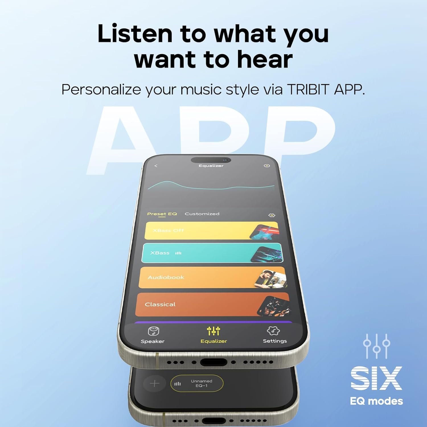 Creative Customization: Personalize your music experience with the DIY EQ mode in the TRIBIT App. Choose from six scenes to tailor the sound to your preferences and needs, creating the perfect ambiance for any occasion.