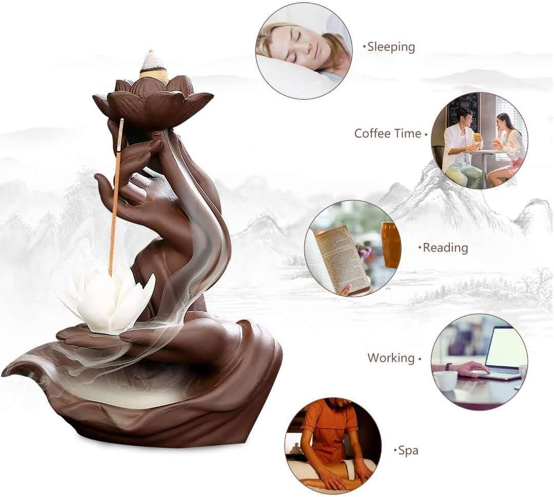 Backflow incense can be widely used in bedrooms, living rooms, offices, meditation rooms, yoga rooms, hotels, and can also be placed in the study room to read a book quietly.