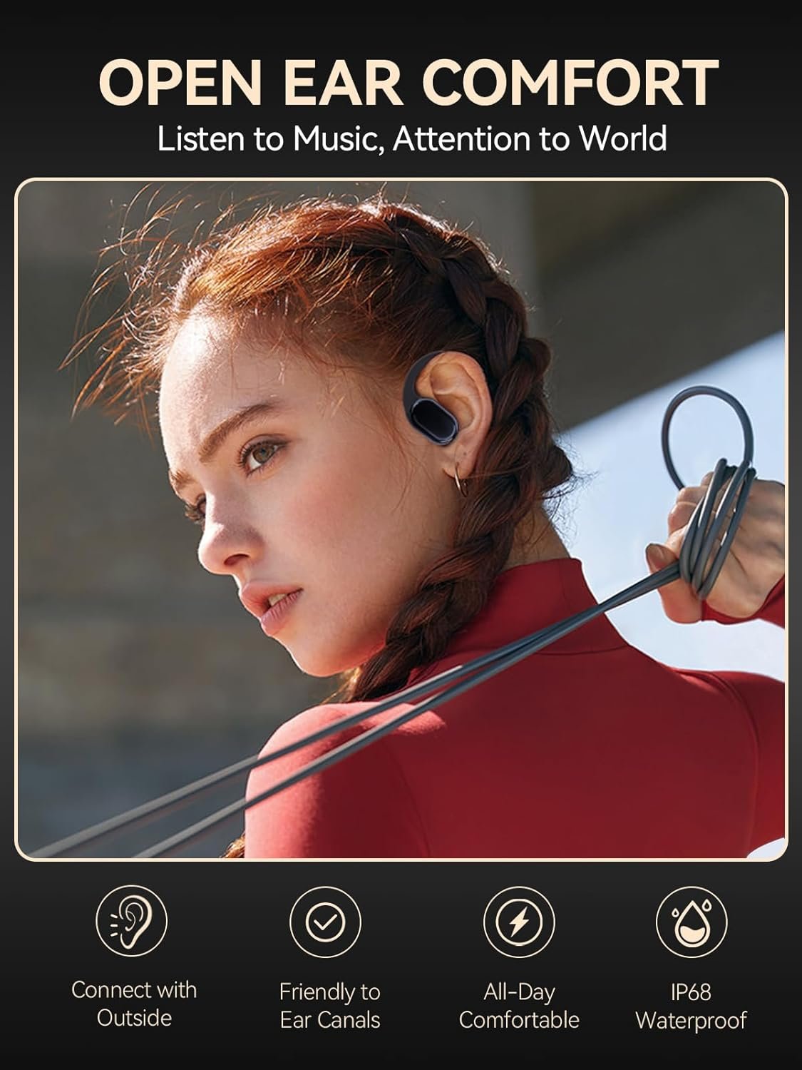 ✅【IP68 Waterproof & Long-lasting】- Our bone conduction earphones boast IP68 waterproofing, effortlessly handling daily sweat and rain. With an additional hydrophobic coating for enhanced waterproofing, preventing water retention and allowing direct cleaning. Ensuring a reliable and long-lasting experience.