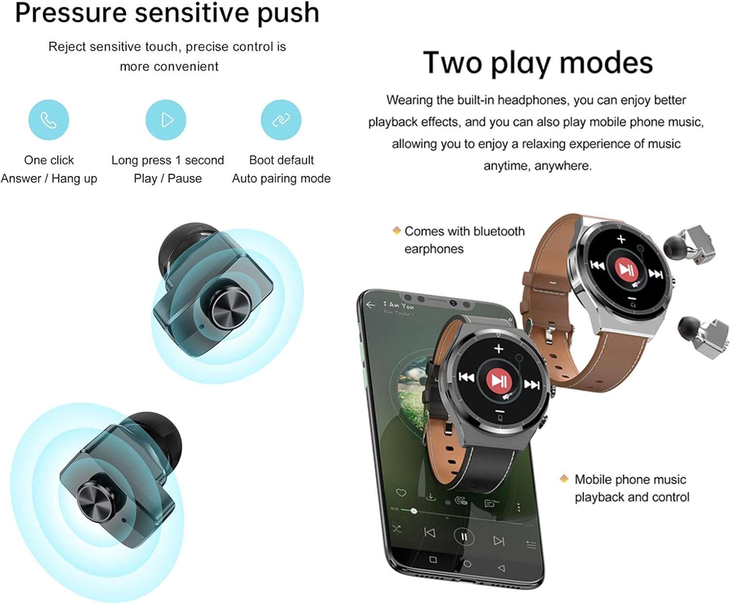 ❤️ Bluetooth Earbuds: Bluetooth: JM08 TWS(Customization);Play/Pause: Short press 1S; Answer/Hang up call: Tap the button;Refusal call: Short press 1S button