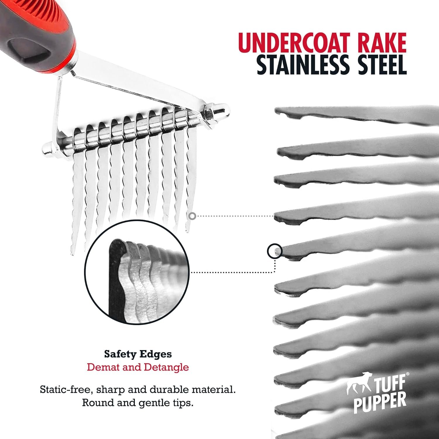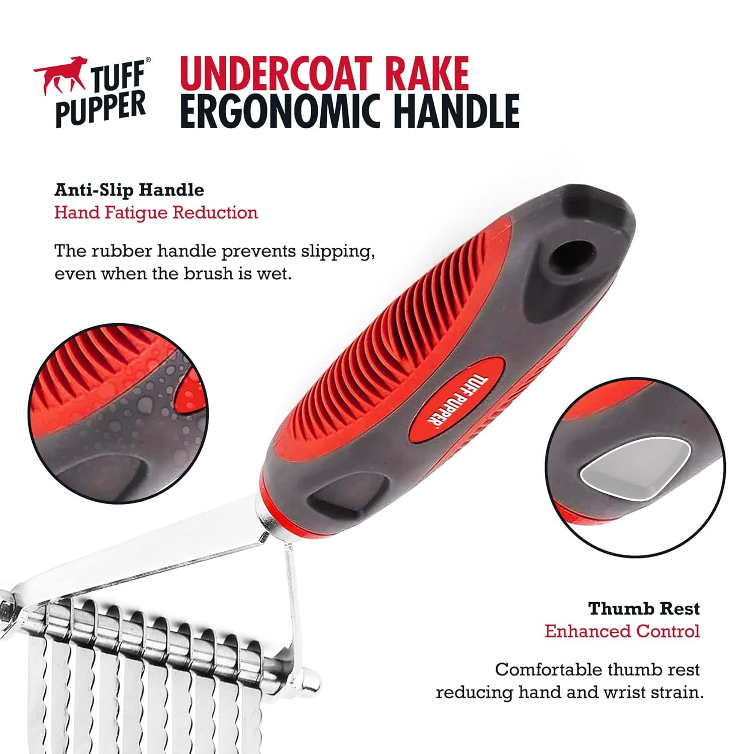 Tuff Pupper Dog Undercoat Rake Tool | Easily & Safely Remove Dead, Matted Or Knotted Hair | Ergonomic Dematting Comb For Thick Coats | Non-Slip Safety Handle Provides Precision Control Against Knots