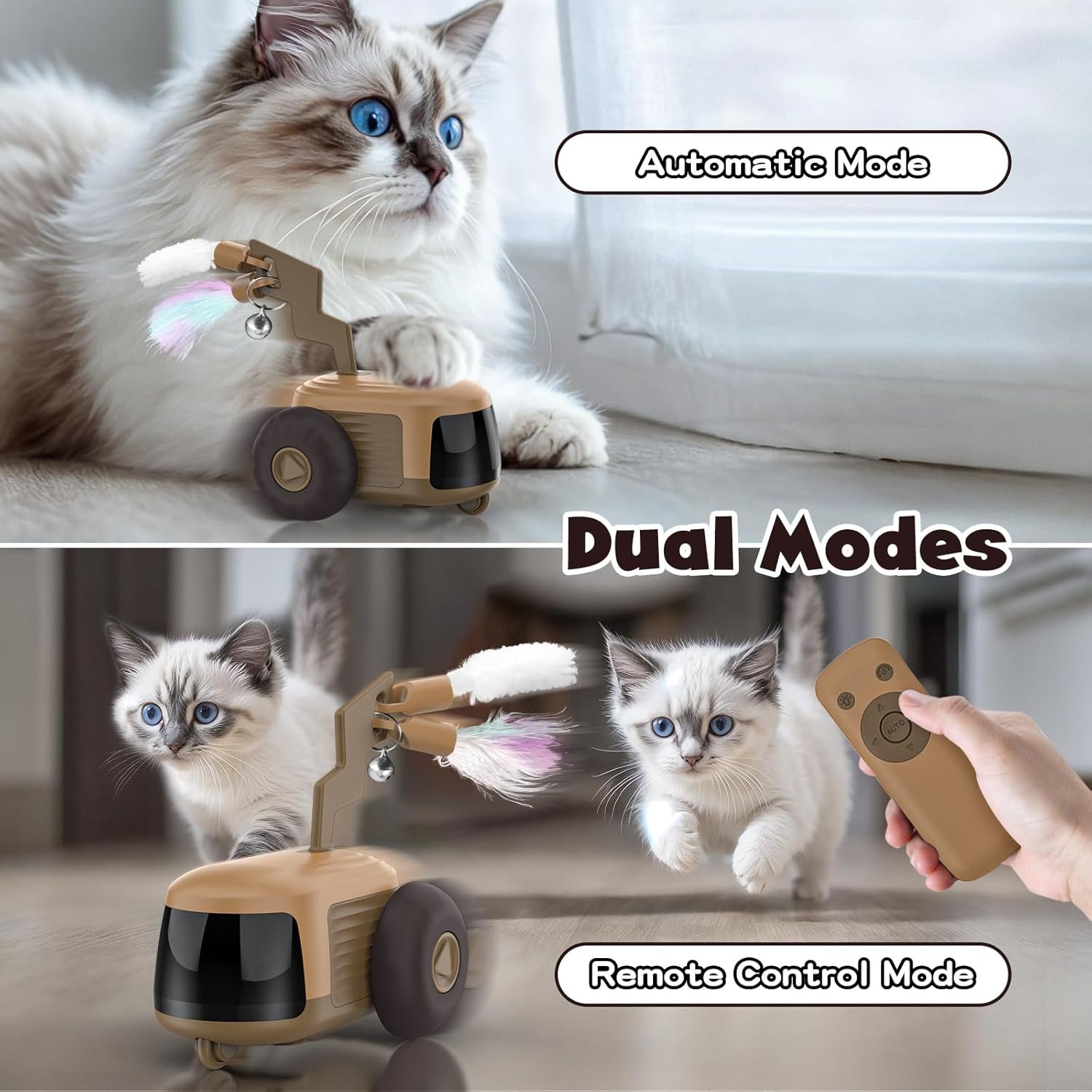 4.0 Automatic & Remote Control Mode: The upgraded auto mode allows the car to run automatically, effectively avoiding obstacles and better adapting to most situations; the remote control mode allows you to control the direction of the car through the remote control, enhancing the relationship between you and the cat.