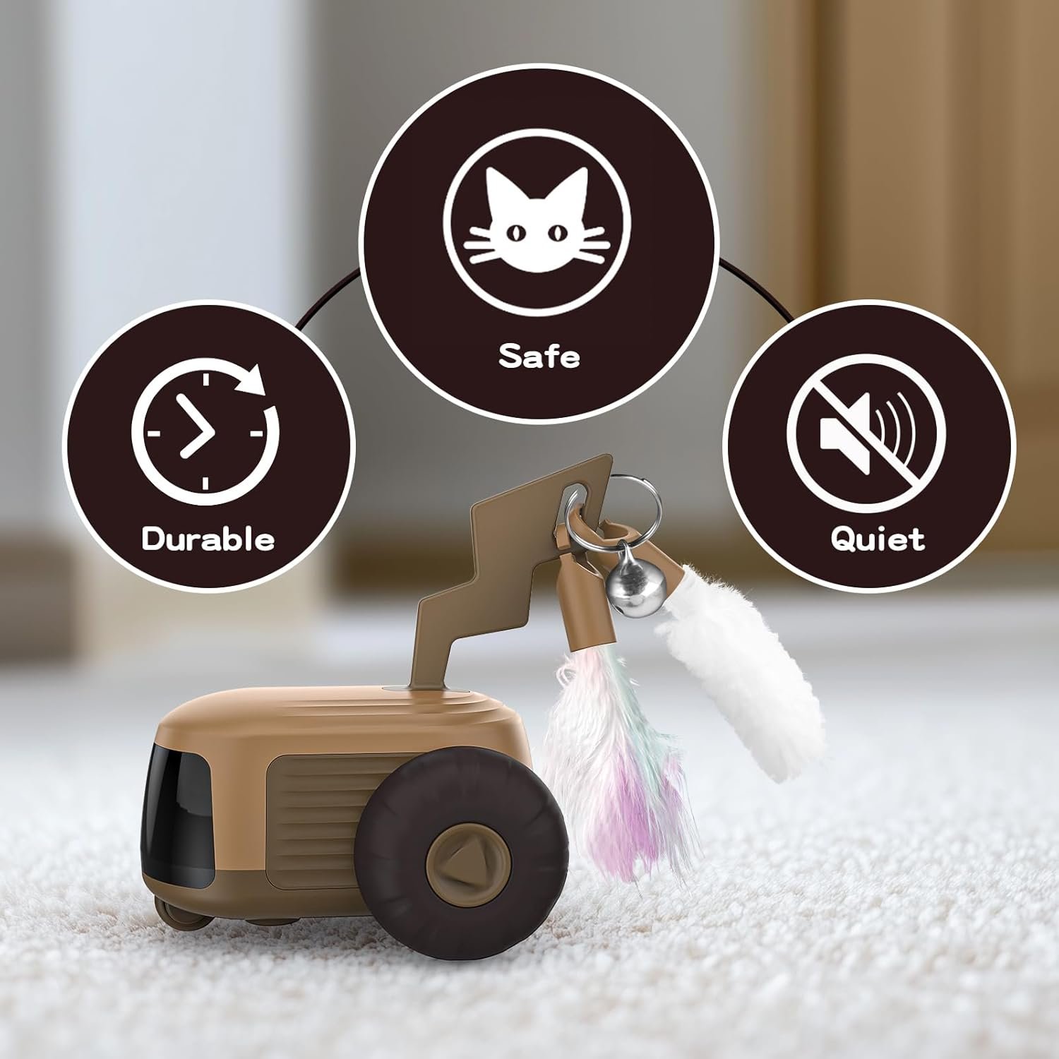 Safe Material & Quiet Play: The high-quality body of cat enrichment toys for indoor cats is designed to withstand biting and kicking. The wheels are made of silicone making them very quiet in operation and are suitable for any floor except for high fluff.