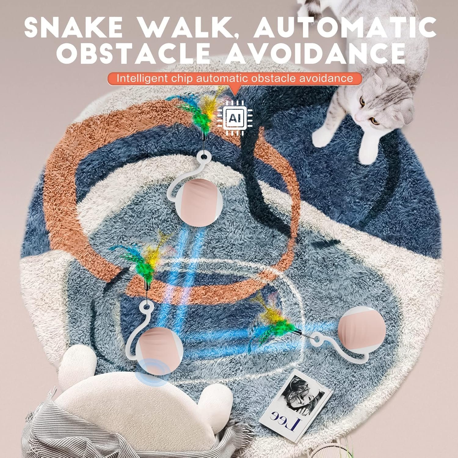 Turbo Tail Cat Ball Toy Cat Toys For Bored Indoor Adult Cats Snake Walk With Feather Interactive Cat Toys Cat Amusing Ball Toys So That Cats Are No Longer Lonely Type-C Rechargeable 4 in 1 Kitten Toys