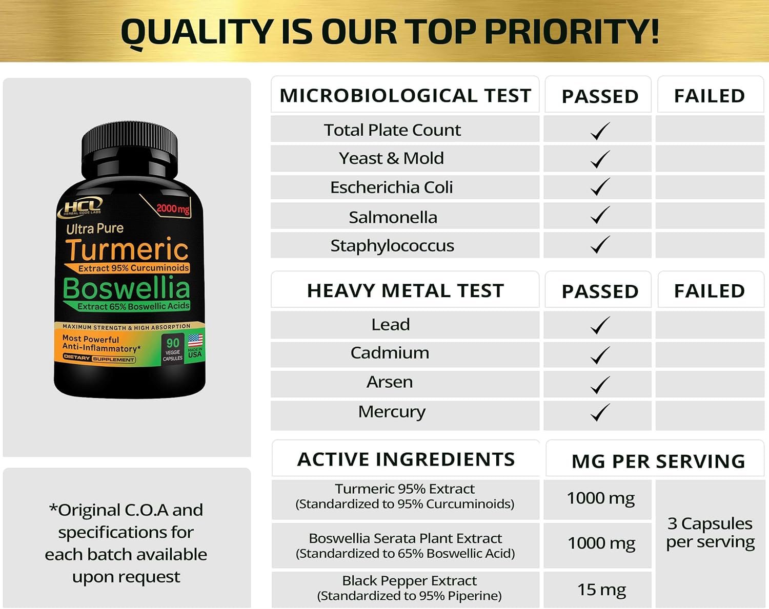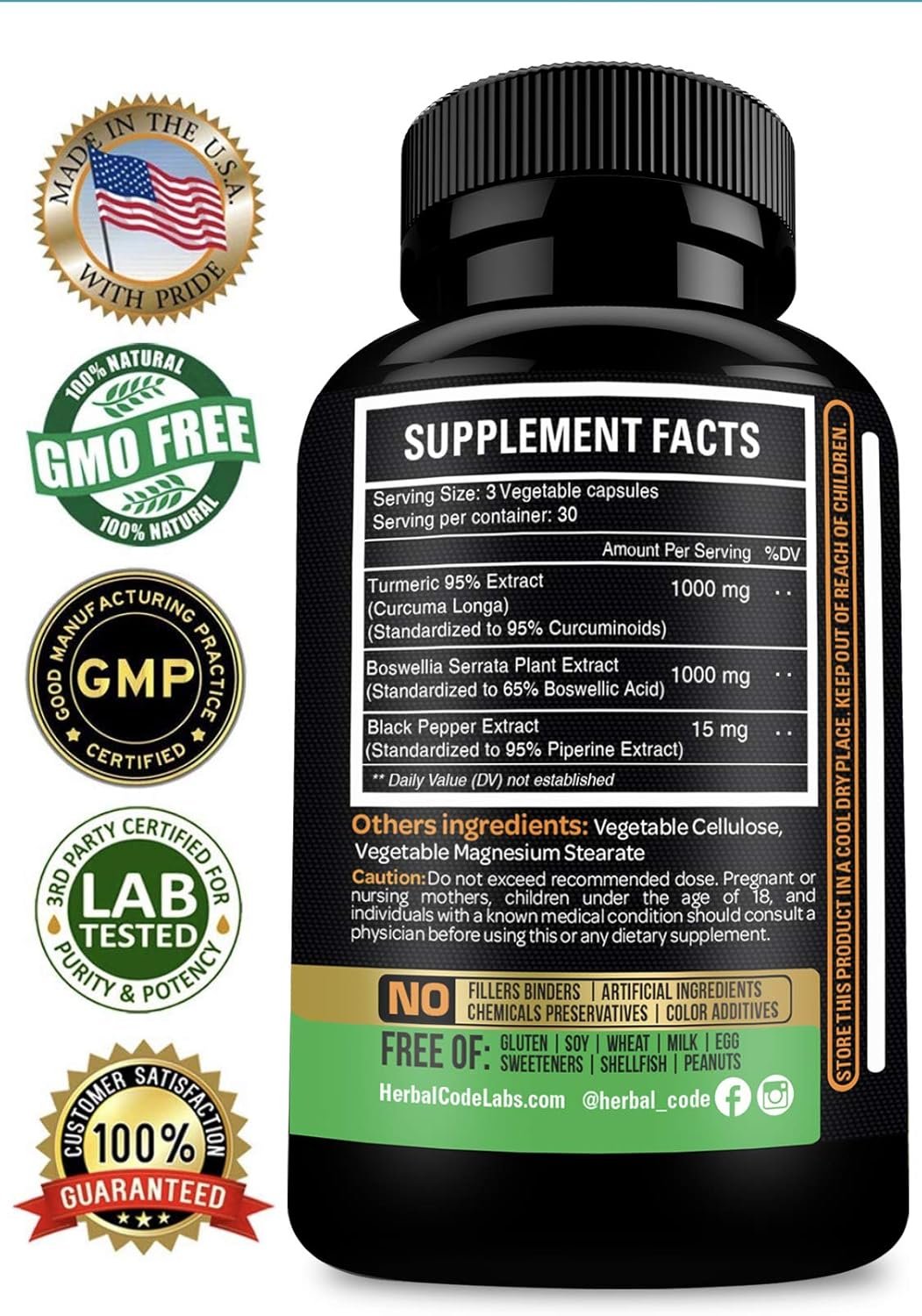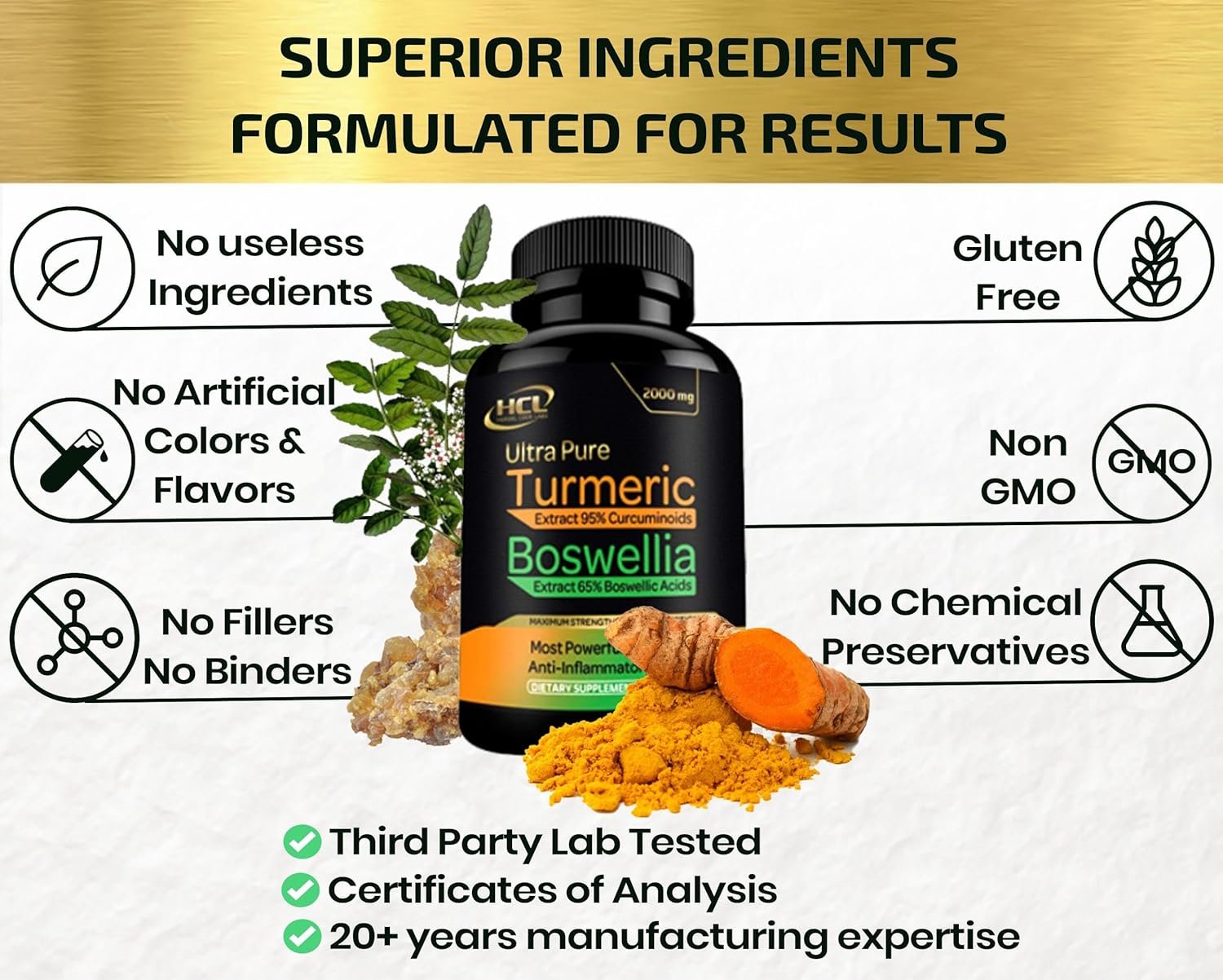 ALL NATURAL PURE INGREDIENTS, NON-GMO, NO FILLERS ✔ We are honest with our customers and high quality is our #1 priority! Our products do not contain any useless fillers in “Other ingredients” other brands use to make manufacturing cheaper. HCL Baswalia Turmeric dietary supplement is gluten-free and vegetarian.
