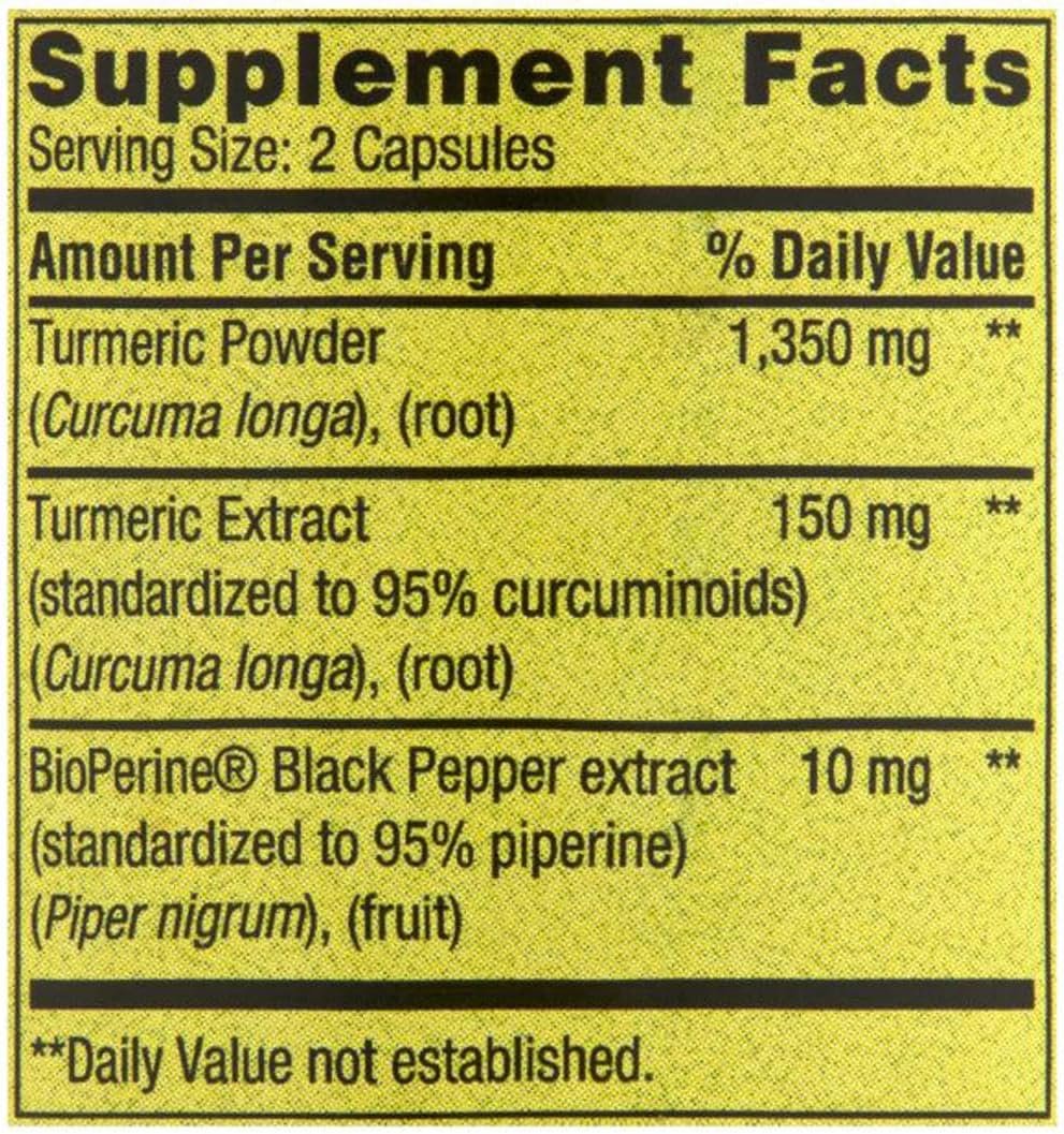 4 TOP CARE Ultra Strength Turmeric Curcumin General Wellness Dietary Supplement Vegetarian Capsules Supports a healthy inflammatory response May promote cardiovascular, immune, joint, and skin health Ultra strength Includes 10 mg BioPerine per serving Kosher and halal No gluten, yeast, wheat, milk or milk derivatives, lactose, sugar, soy