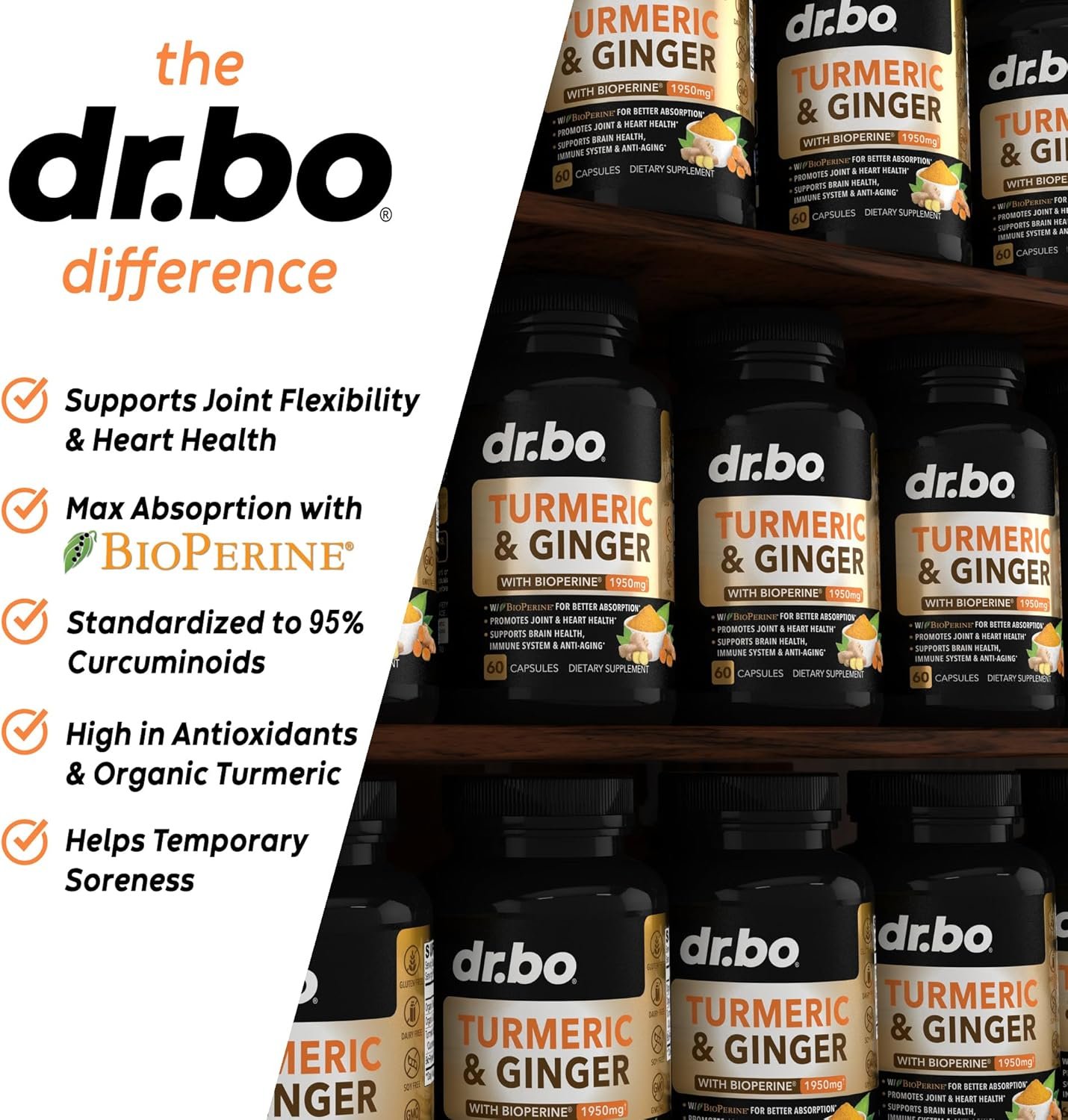High Potency: Dr. Bo Vegan Organic Tumeric and Curcumin supplements use the best quality tumeric and ginger; high grade turmeric pills, the most potent turmeric curcumin with black pepper bioperine