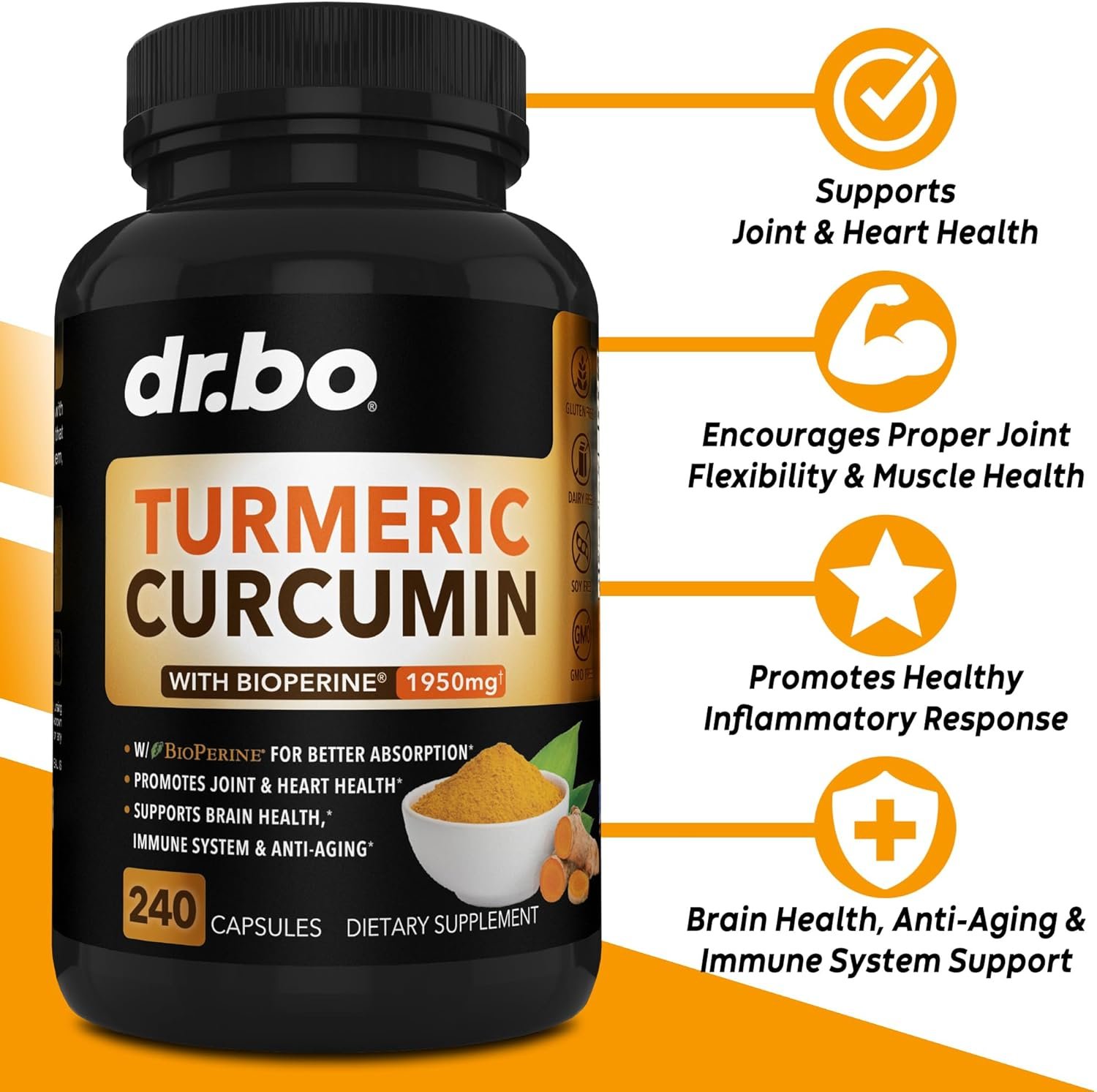 High Potency: Dr. Bo Vegan Organic Tumeric and Curcumin supplements use the best premium quality ingredients; high grade turmeric pills, the most potent turmeric curcumin with black pepper bioperine