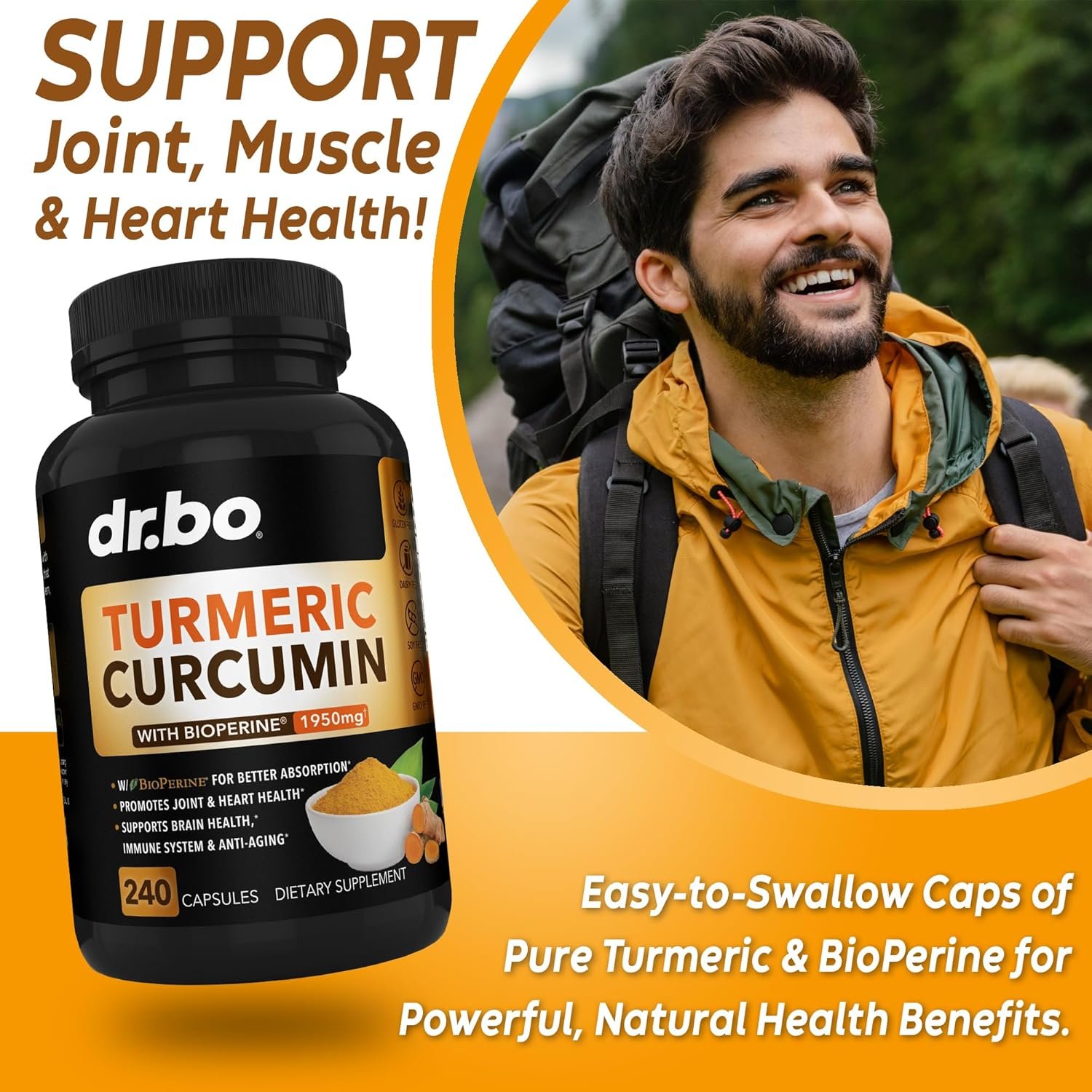 Organic Turmeric Capsules: Our Organic Turmeric Curcumin with BioPerine supplement capsules have 1950mg of Curcuma Longa per serving & BioPerine black pepper extract; joint supplements for men women
