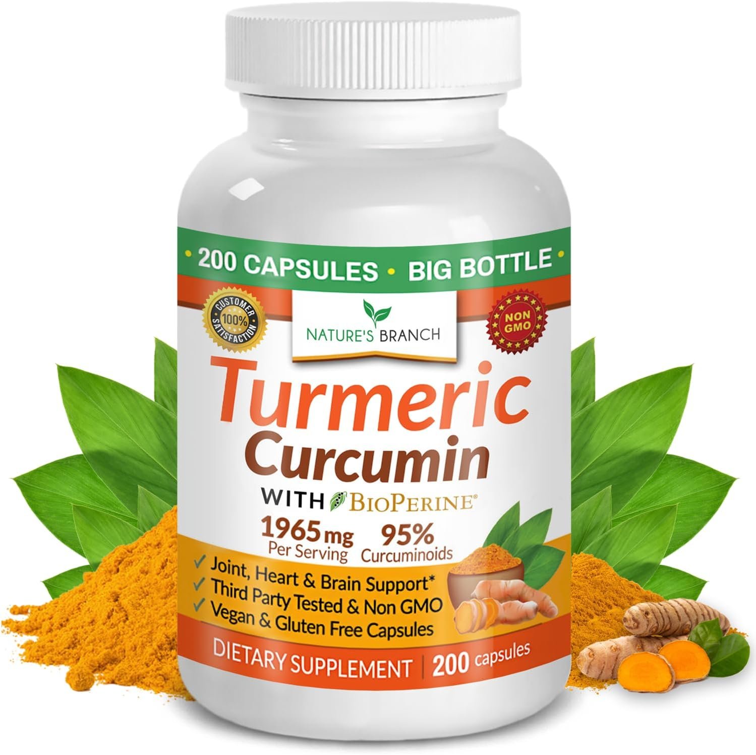 200 CAPSULES SUPPLY – TURMERIC CURCUMIN FOR JOINT SUPPORT 1965MG: Our highest quality, 95% standardized curcuminoids, Turmeric Curcumin with BioPerine supplements delivering a 1965mg complex and turmeric root powder extract per serving. Our formula comes with Organic Turmeric and BioPerine (turmeric with black pepper) for supreme bioavailability and added absorption
