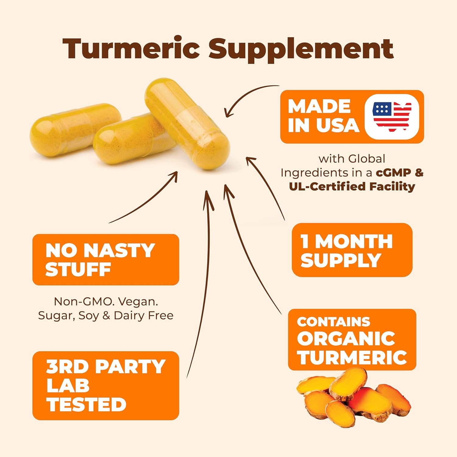 PREMIUM TURMERIC CURCUMIN SUPPLEMENT YOU CAN TRUST. Made in the USA in a cGMP-Certified & UL-Certified Facility. Globally-Sourced ingredients. Non-GMO. Vegan. Dairy-Free, Sugar-Free and Soy-Free. A convenient flip-top bottle for on-the-go nutrition.