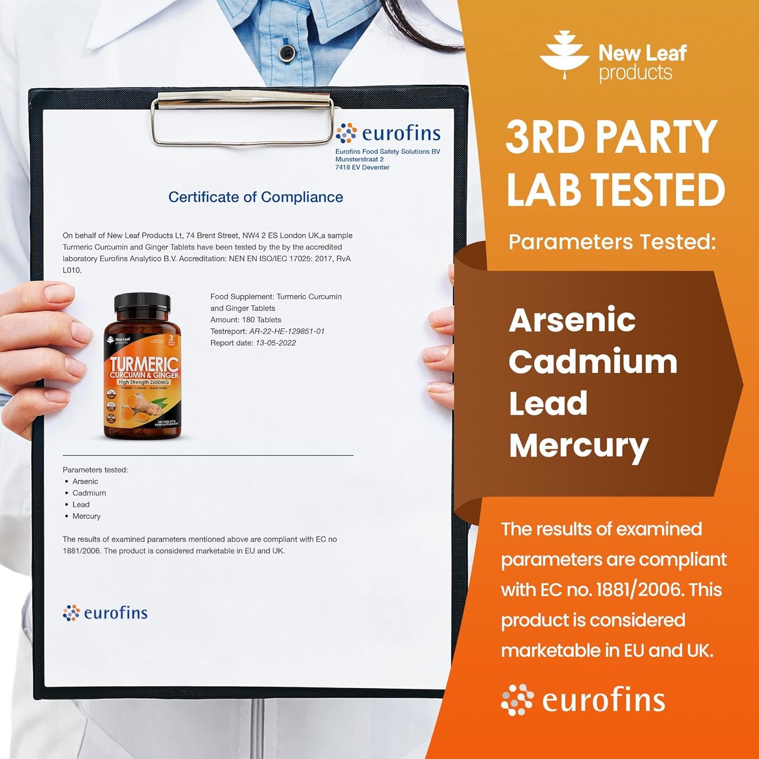 THIRD PARTY LAB TESTED – Each ingredient is quality tested before our manufacturing process begins, once completed every batch of our Turmeric tablets undergoes further rigorous quality testing. Our Turmeric supplements have been 3rd party tested for heavy metals and unwanted compounds by UK & Europe’s largest testing facilities (Eurofins) The lab is UKAS accredited according to ISO/IEC 17025:2017