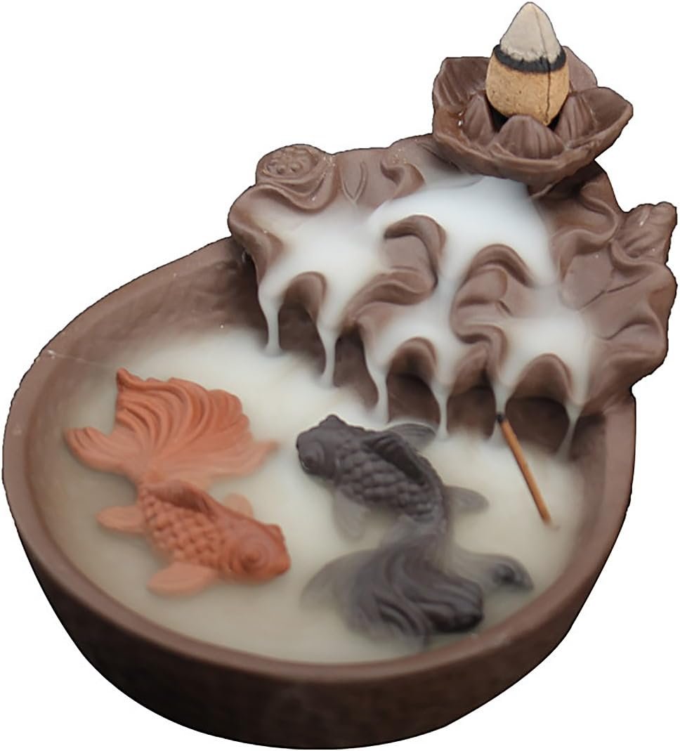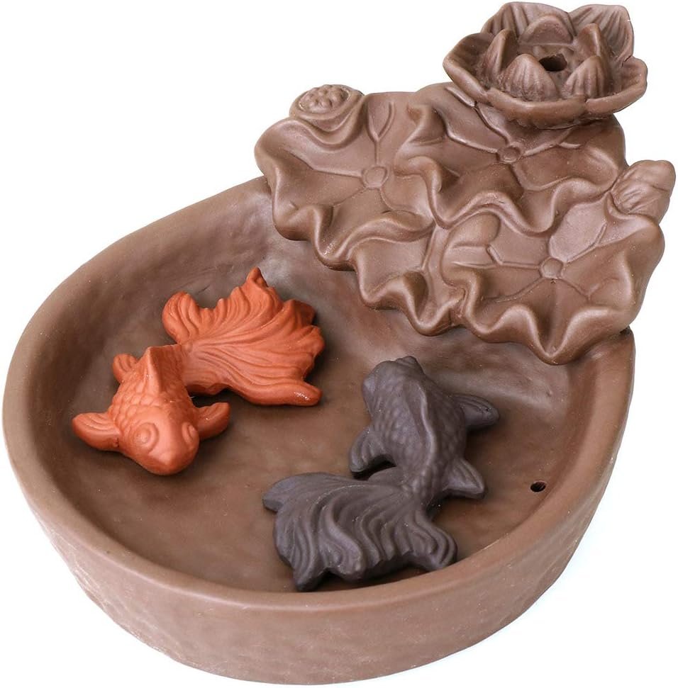 Customers appreciate the incense holder’s design. They find it visually appealing with its intricate yet simple fish and koi pond details. Many find it suitable for altars. However, opinions differ regarding smell, smoke flow, size, build quality, functionality, and value for money.
