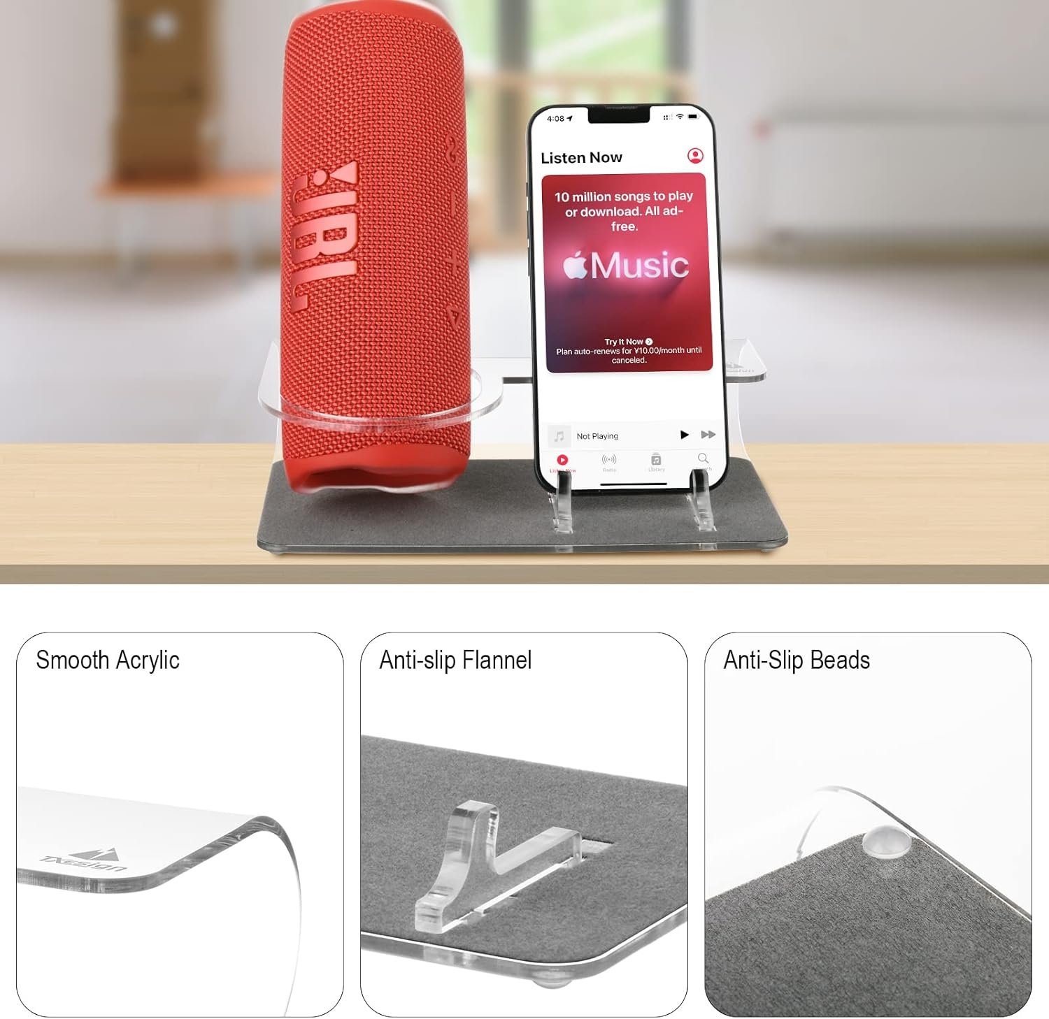 1* Acrylic Stand Holder (Speaker and Smartphone are not included)