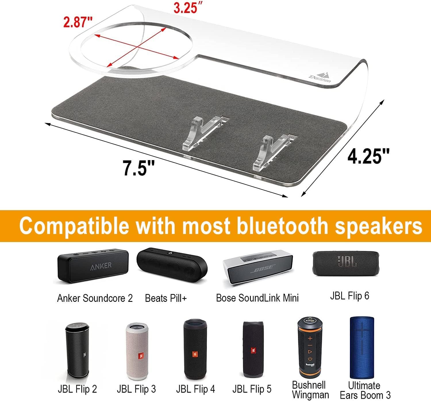 TXEsign Acrylic Desktop Stand Holder Compatible with JBL Flip 4/JBL Flip 5/JBL Flip 6/Beats Pill+/Bushnell Wingman/iPhone, Clear Table Holder for Bluetooth Speaker and Smartphone (Transparent)